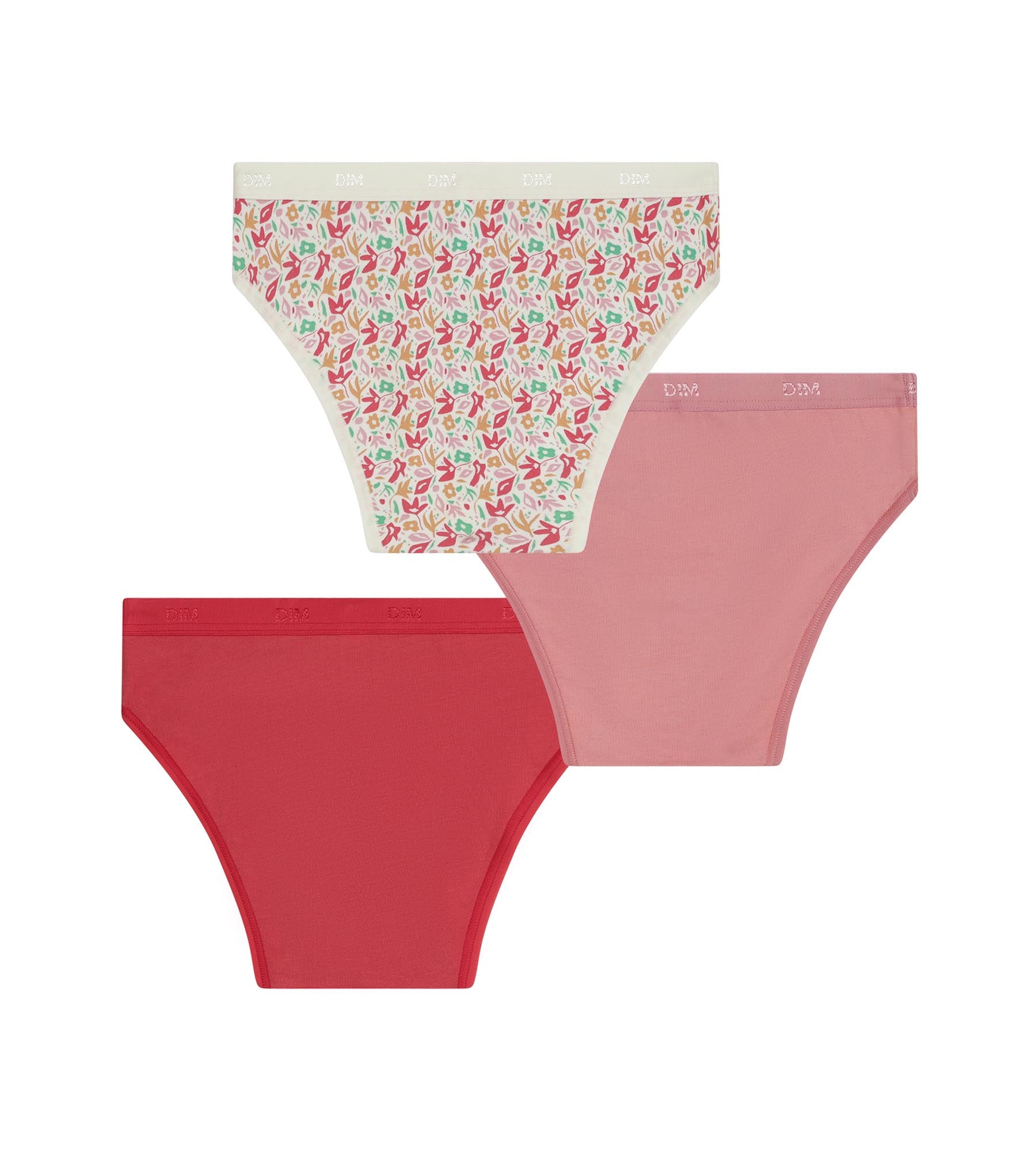 Pensé pour un usage quotidien, ce lot Les Pockets réunit trois slips filles dans une palette rouge et rose simple à associer. Conçues en coton stretch à la fois doux et confortable, ces culottes filles s’enfilent sans contrainte. Le pack mélange une culotte ado rouge unie décorée d’une petite fleur, une version rose ornée d’un hibiscus, et un slip fille imprimé all-over.