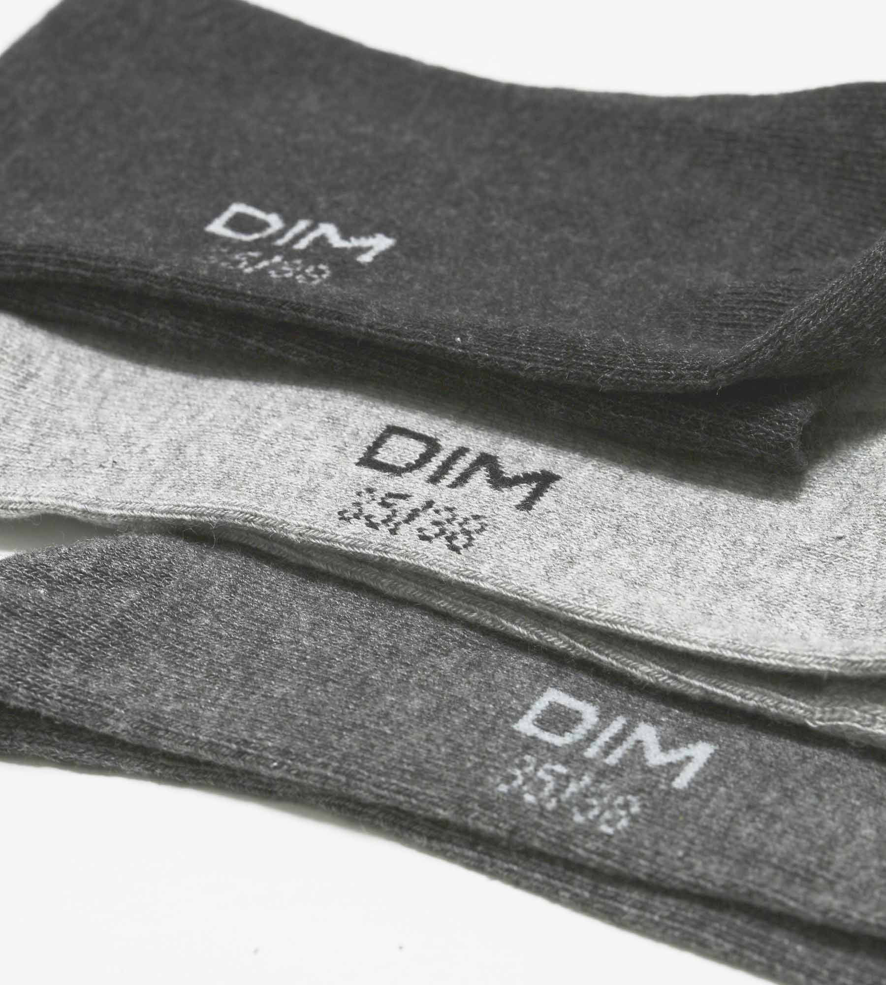 Adoptez un look décontracté et soigné avec le lot de 3 paires de chaussettes femme en coton Gris Clair Dim !