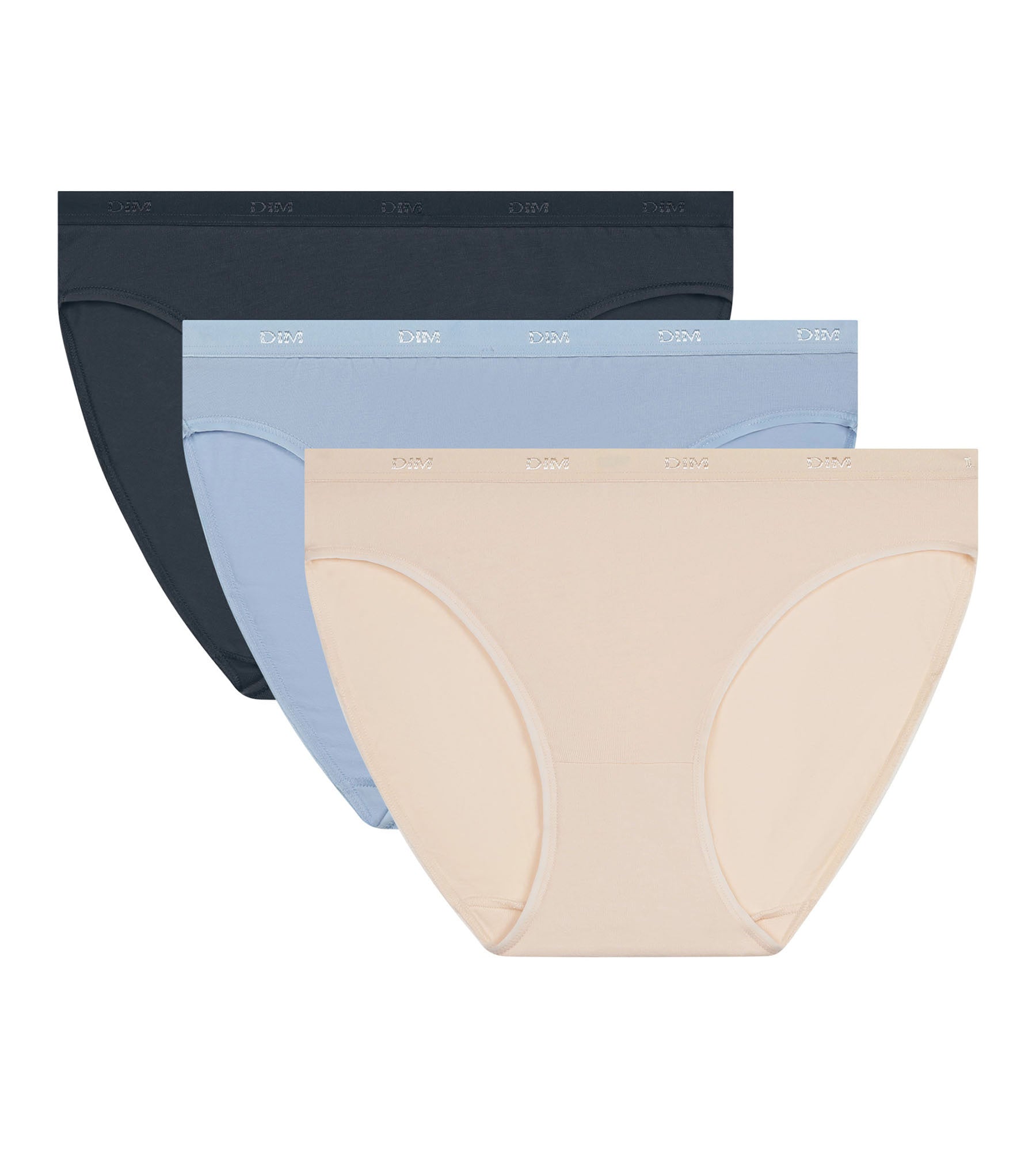 Lot de 3 slips femme coton stretch Bleu Beige Gris Les Pockets Ecodim