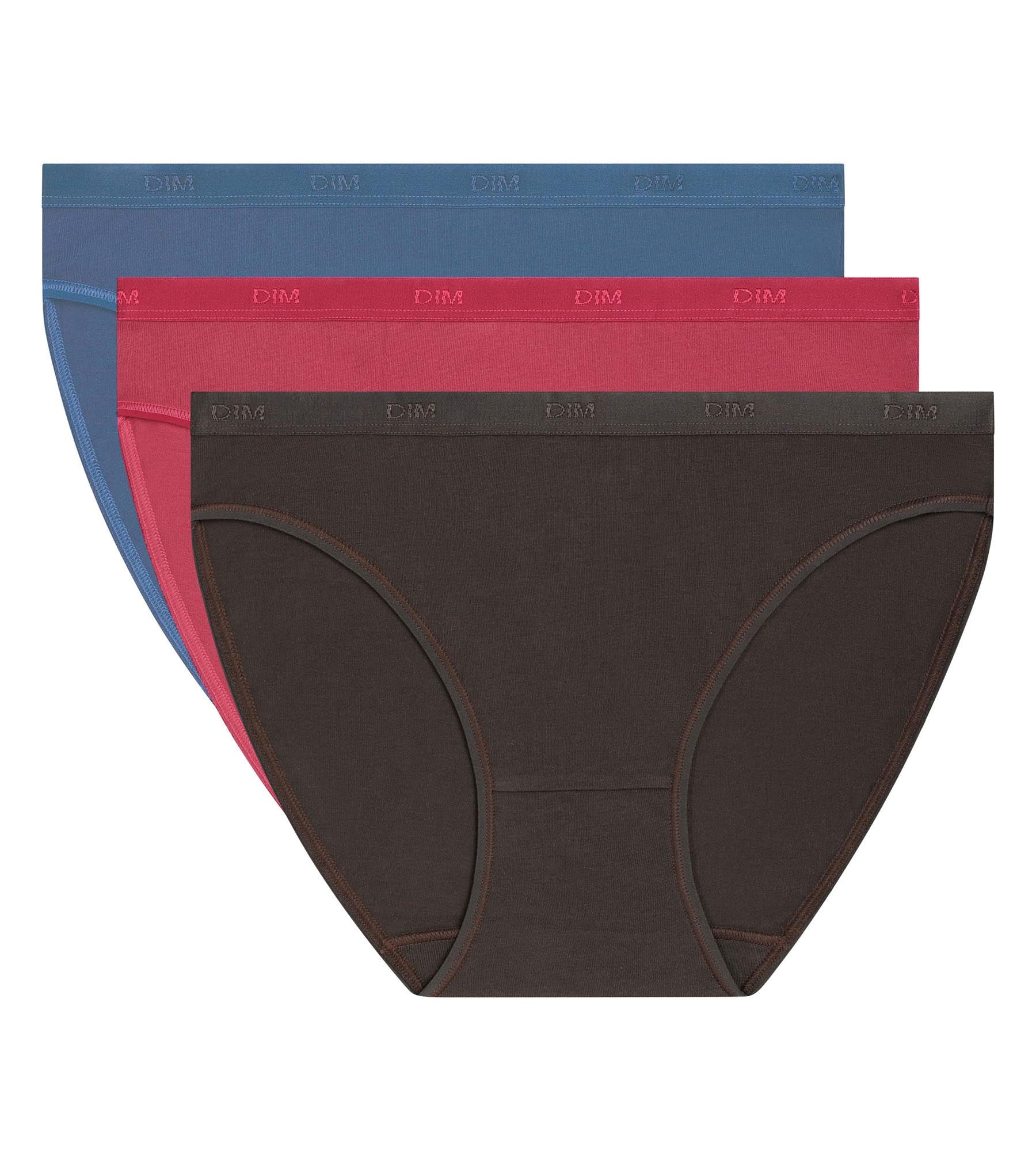Lot de 3 slips femme coton stretch Bleu Rouge Les Pockets Ecodim