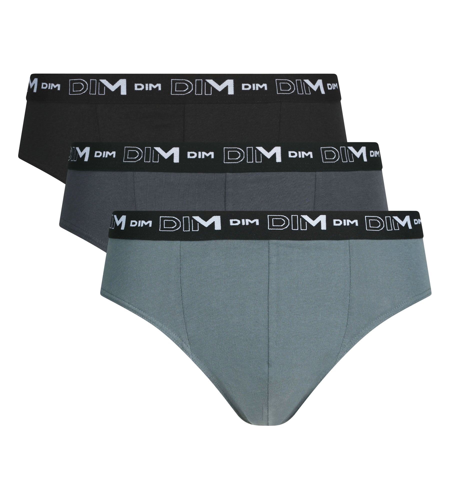 Lot de 3 slips homme Noir Gris Dim Coton Stretch