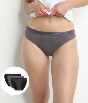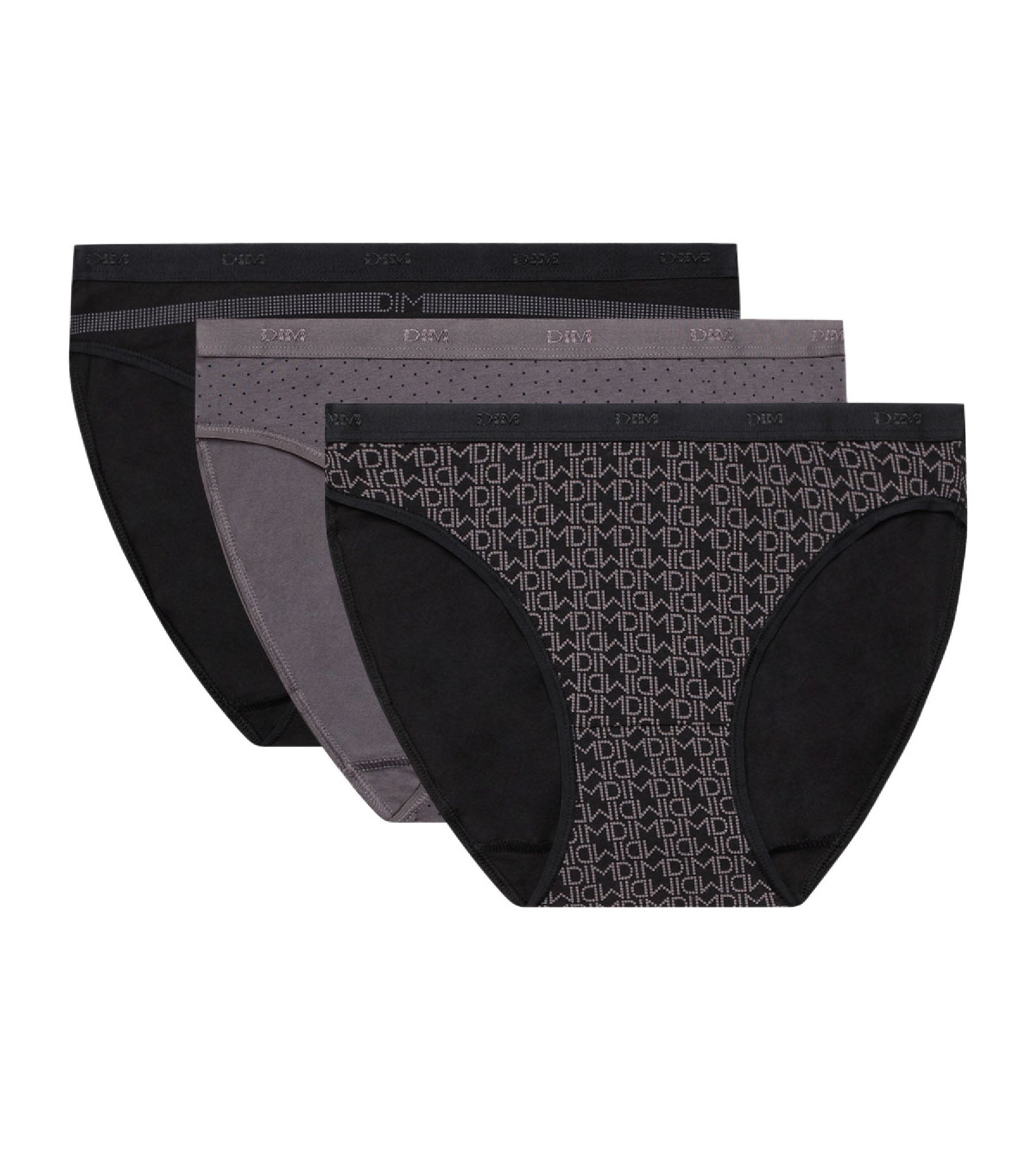 Lot de 3 slips noirs et gris imprimés Femme Les Pockets Coton