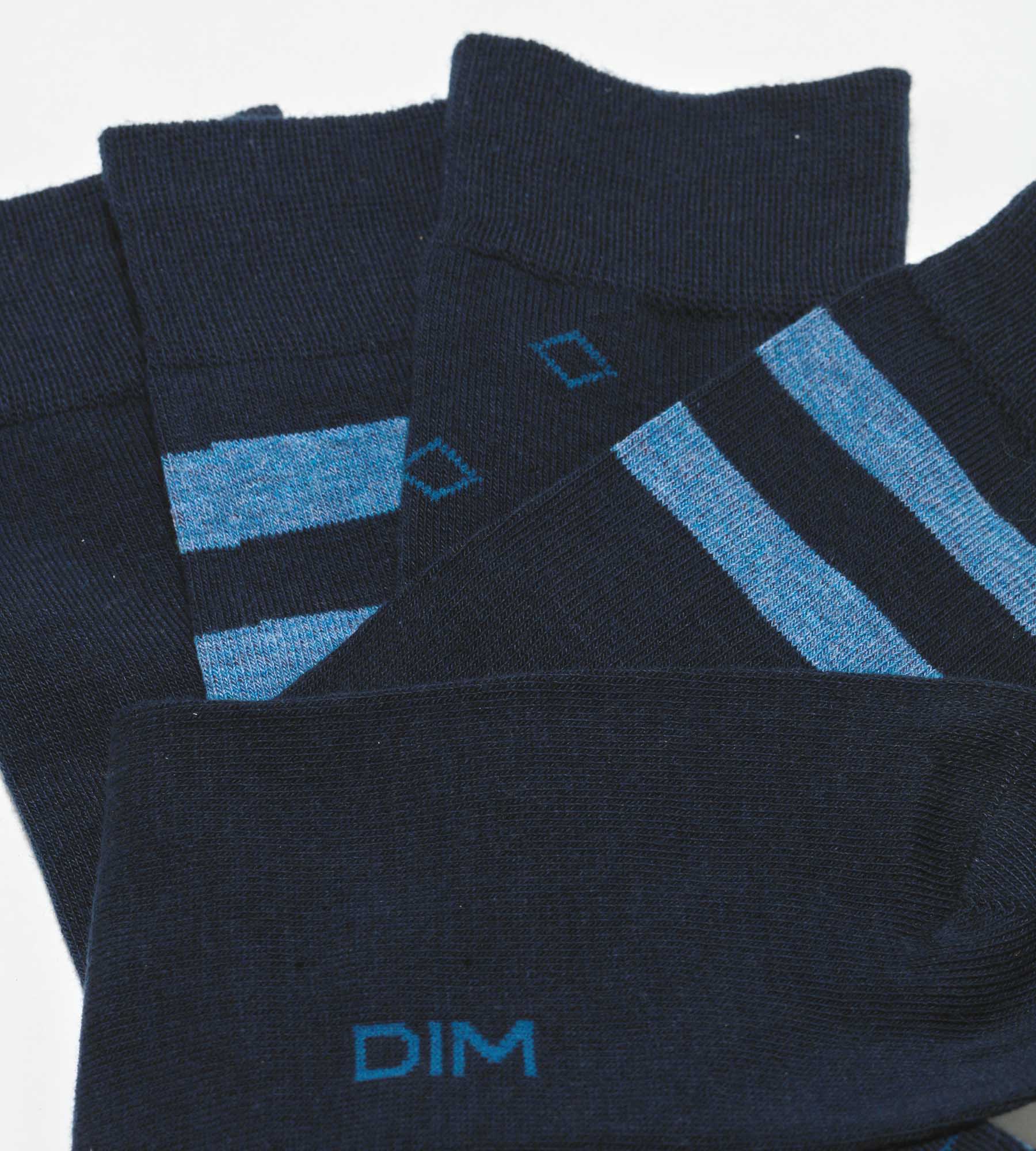 Twistez vos tenues avec élégance grâce au lot de 4 paires de chaussettes coton homme EcoDim Style Bleu Marine à rayures !