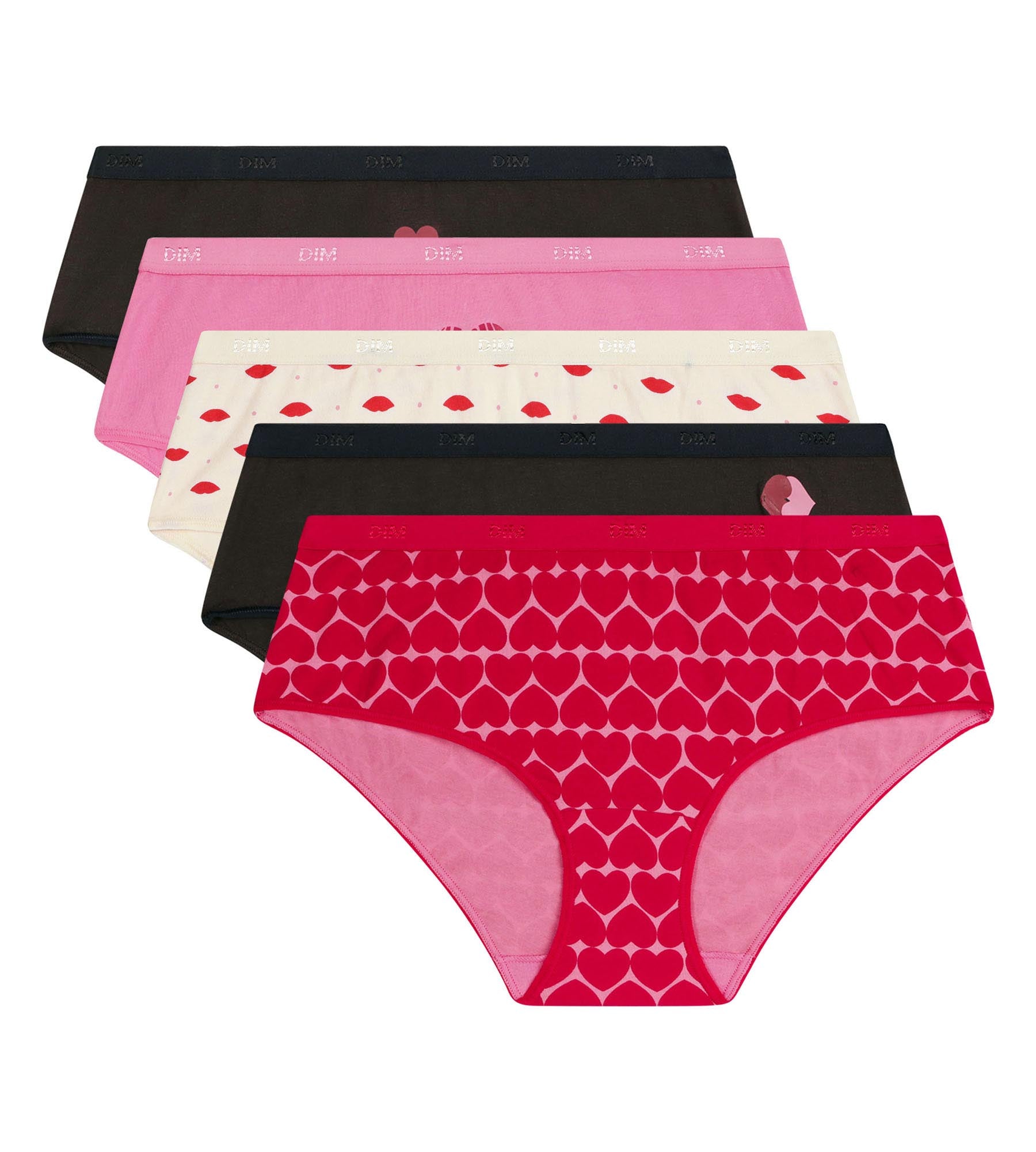 Des motifs coeurs pleins de tendresse pour un quotidien confortable avec le lot de 5 boxers femme en coton stretch Les Pockets.