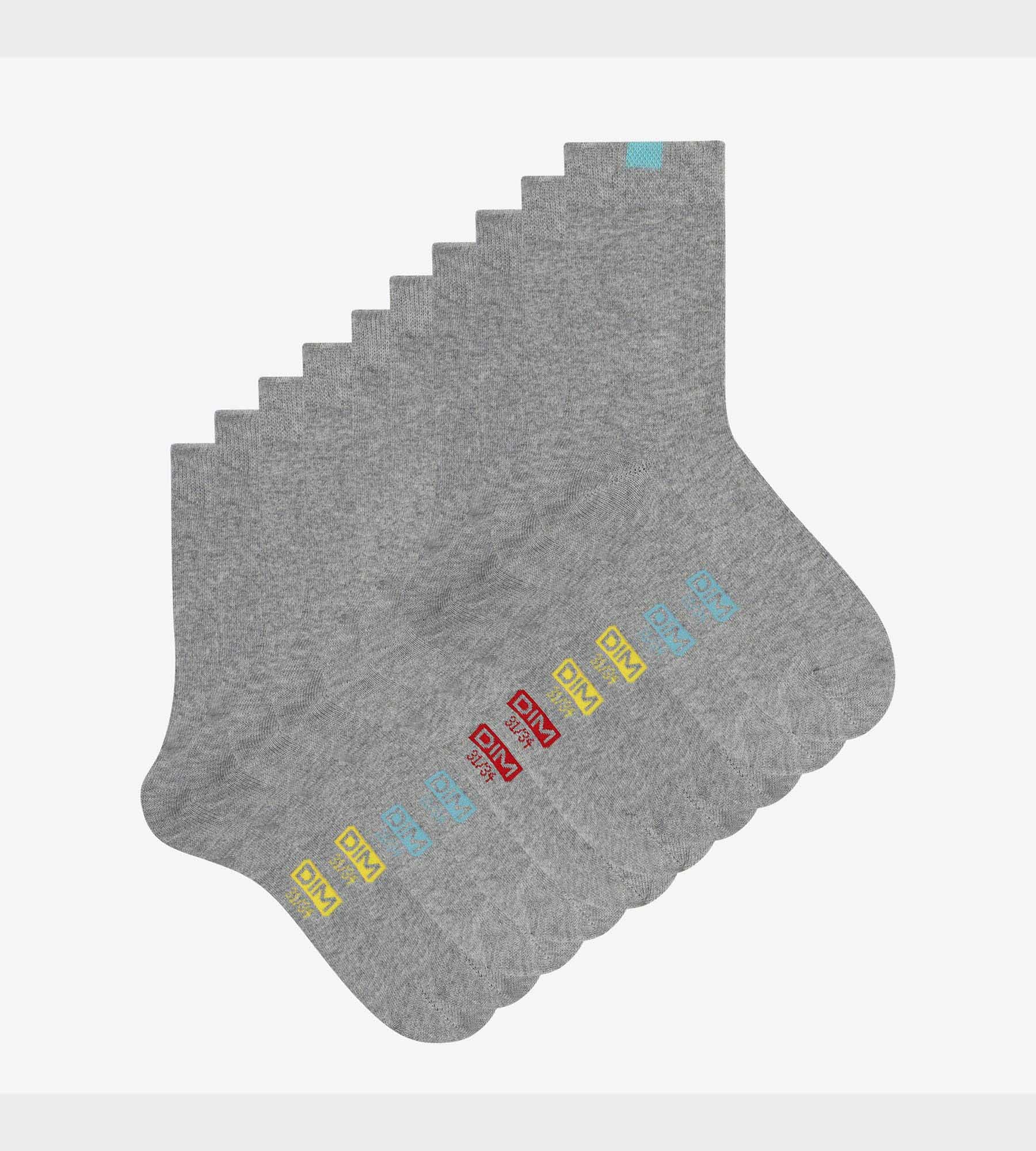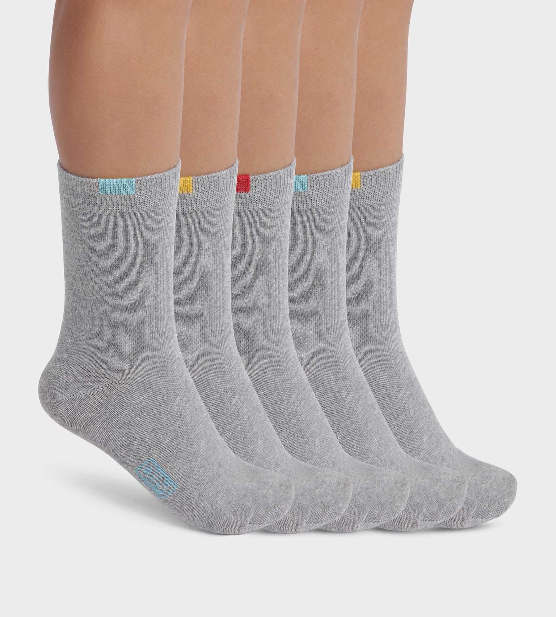 Facilitez-vous la vie avec le lot de 5 chaussettes enfants en coton Gris Chiné EcoDim aux vignettes colorées !