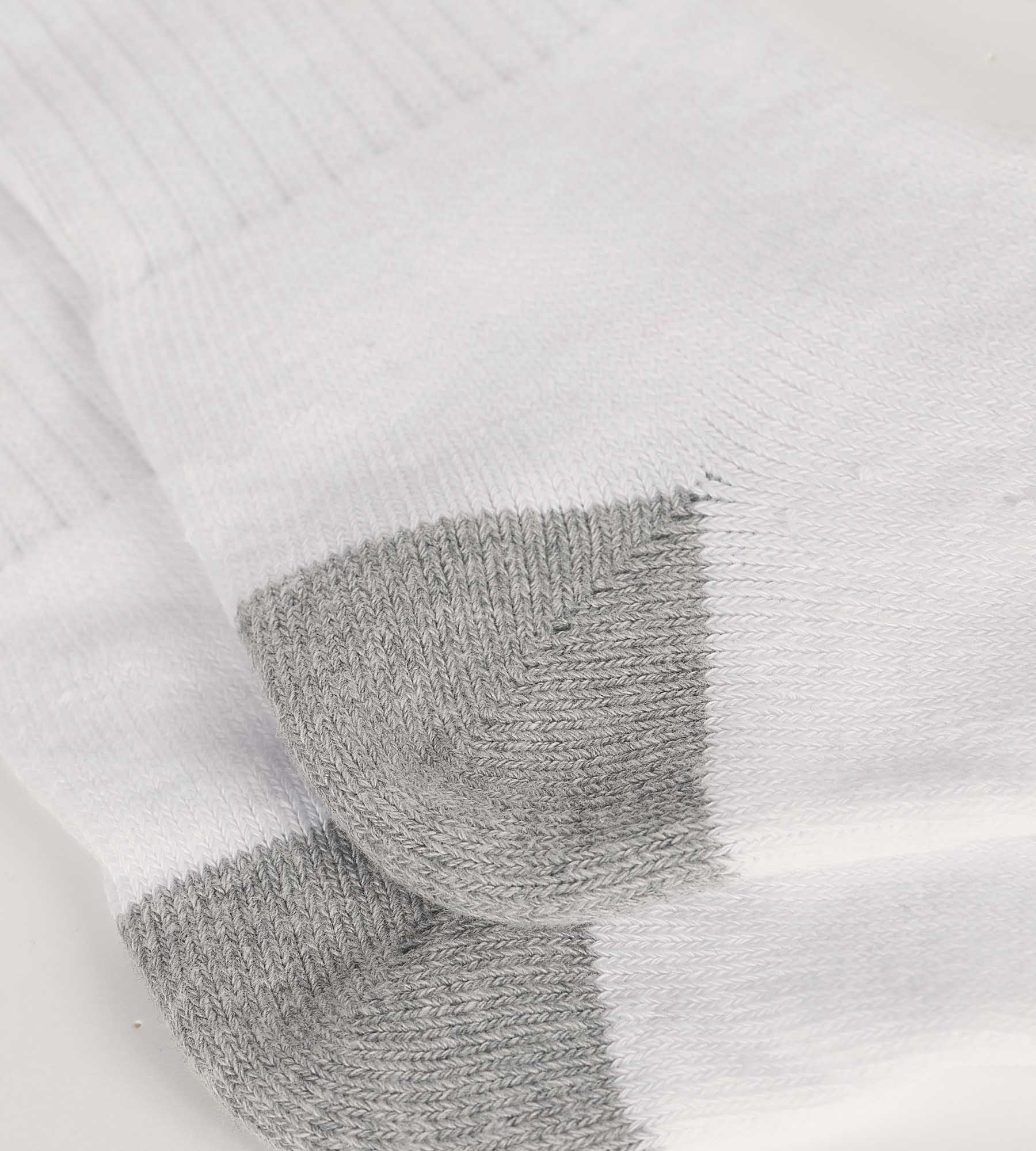Conçu avec des fibres de coton ultra respirant et des coutures souples, le lot de 5 paires de chaussettes homme EcoDim Sport vous accompagne dans votre pratique avec un confort maximal ! Grâce à leur semelle plus épaisse en bouclette, les chaussettes de sport homme EcoDim atténuent les impacts et protègent vos appuis lors de vos activités de moyenne intensité. Avec leur maillage Blanc à côtes, aux extrémités Gris Chiné, les chaussettes coton homme EcoDim Sport ont un petit côté rétro très tendance !