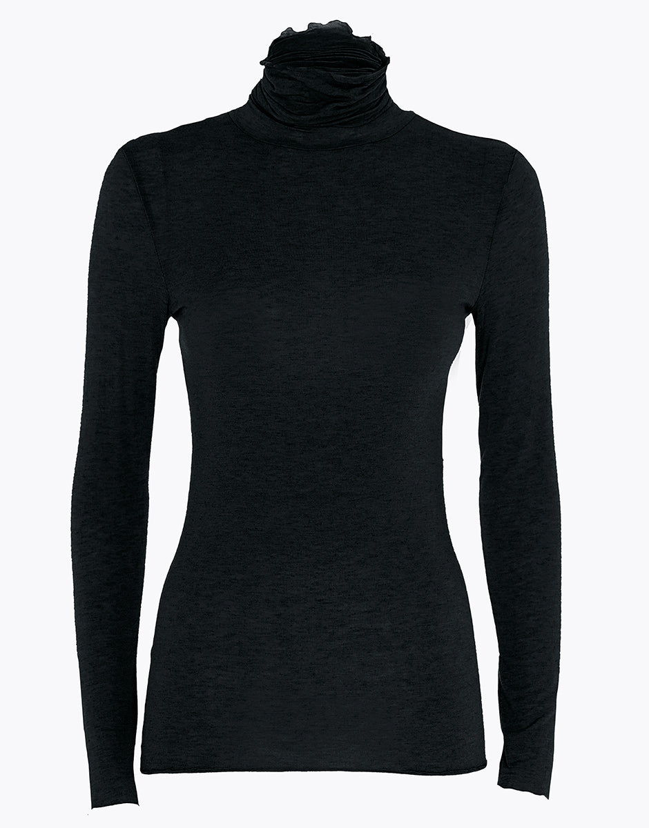 Pull à col montant et manches longues en modal et cachemire Noir