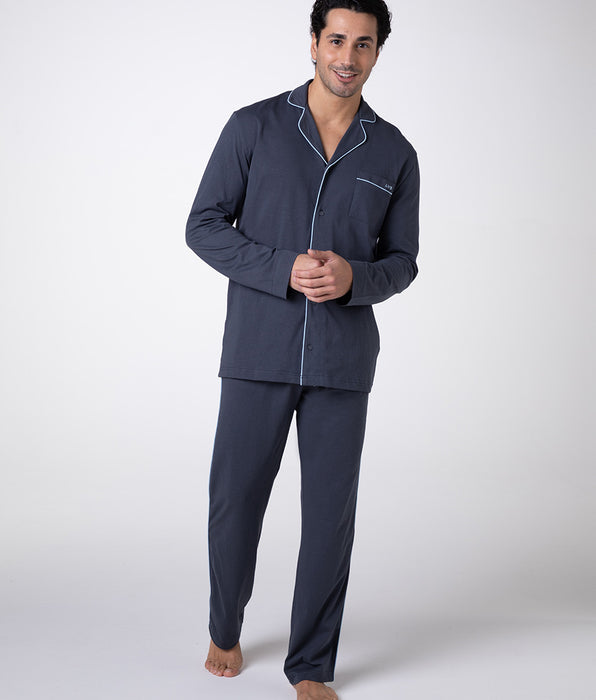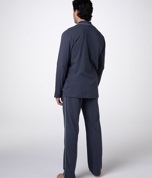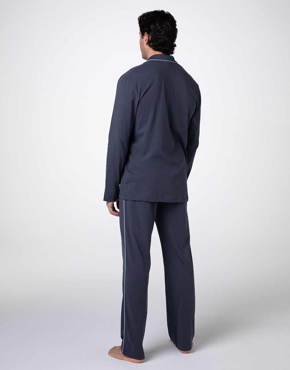 Pyjama long ouvert en jersey de coton ardoise pour unisexe