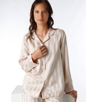 Choisissez le confort avec style et portez notre pyjama Jacquard Amande pour une nuit sous le signe de l'élégance.