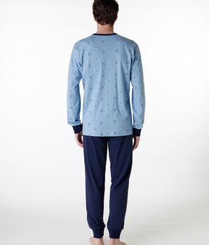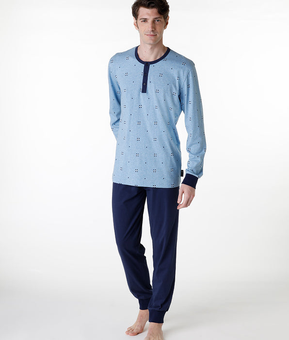 Pyjama long serafino en jersey bleu chiné pour homme