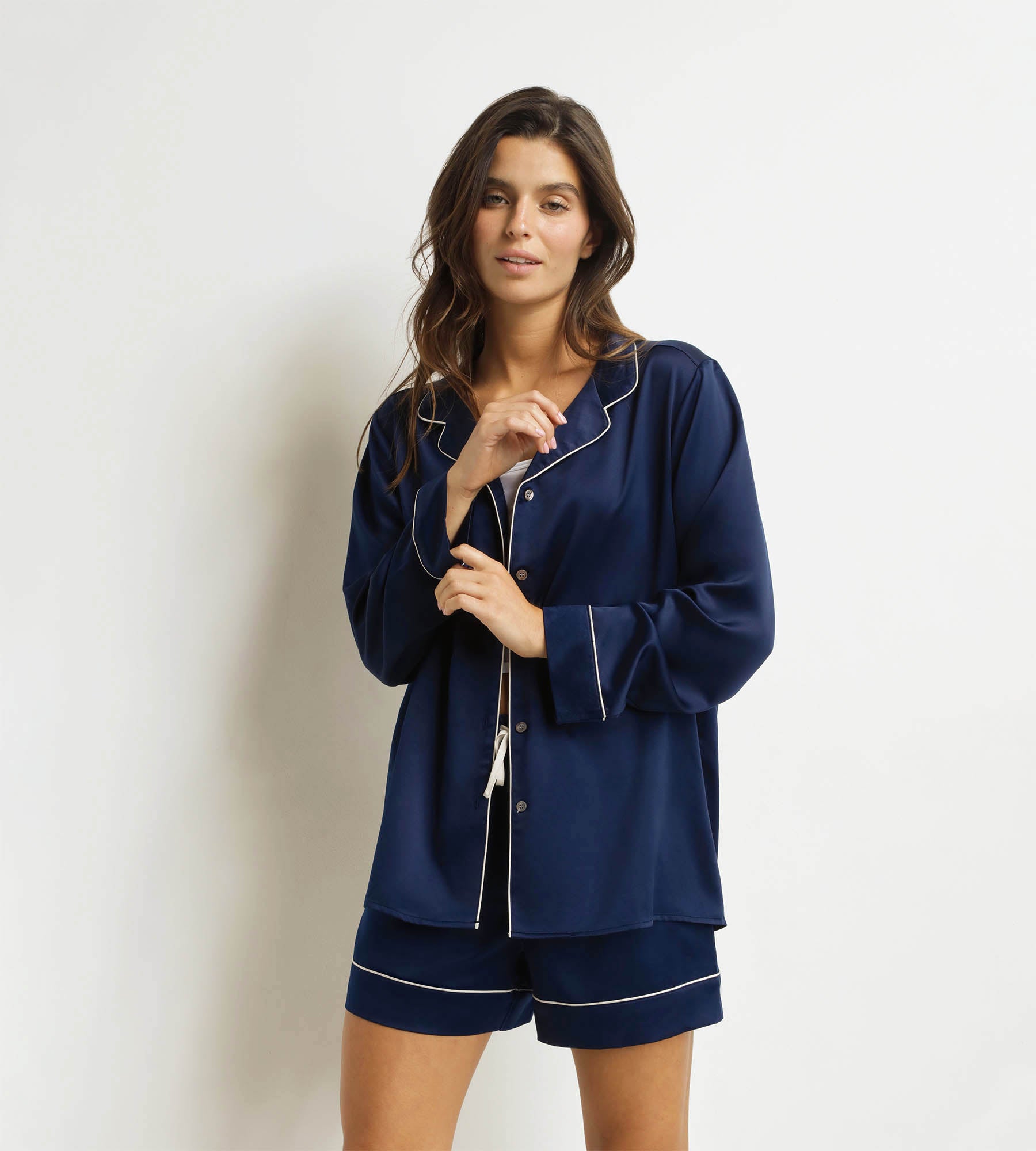 Léger et raffiné, optez sur le pyjama short pour femmes en satin Bleu Minuit Dim Don’t Disturb, pour des nuits de rêve !