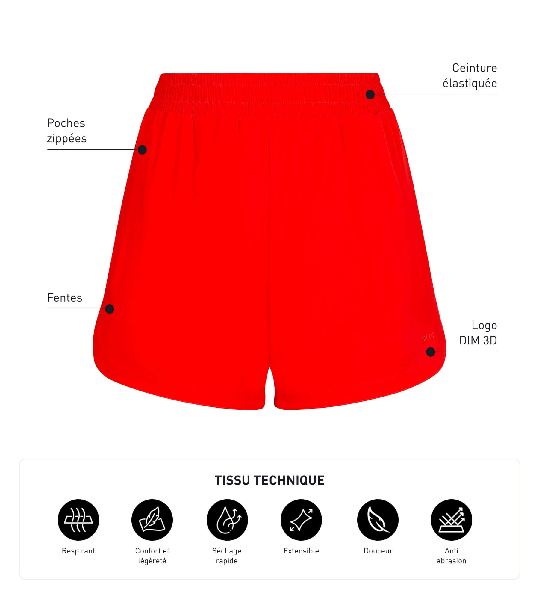 Avec sa matière en viscose légère qui laisse la peau respirer, et sa coupe courte, le short femme Dim Move est là pour accompagner toutes vos sessions avec aisance. Doté de fentes latérales et d’une taille élastique, le short pour femmes Dim Move offre une vraie liberté de mouvement, même pour les entraînements les plus dynamiques. Vous allez apprécier ses poches sécurisées, qui permettent de garder vos essentiels à portée de main et son coloris orange acidulé qui booste votre tenue.