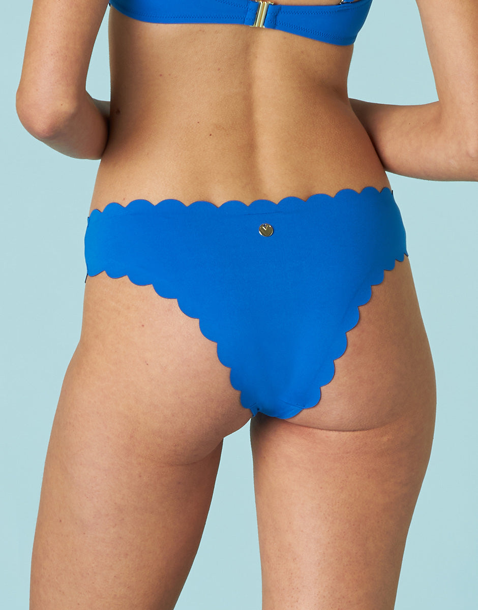 Slip de bain brésilien Scallop en microfibre bleu électrique