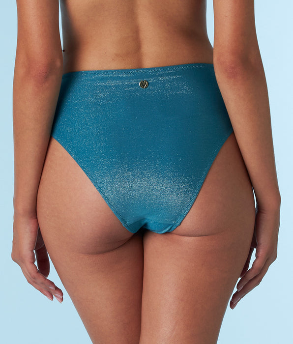 Slip de bain Taille Haute Plain Lurex en microfibre Ottanio