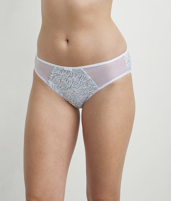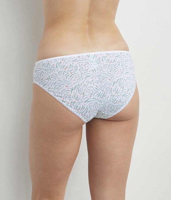 Slip femme coton et tulle à motif végétal Blanc Generous Coton Bio