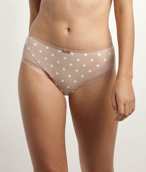 Slip femme en microfibre et tulle Beige à pois Generous