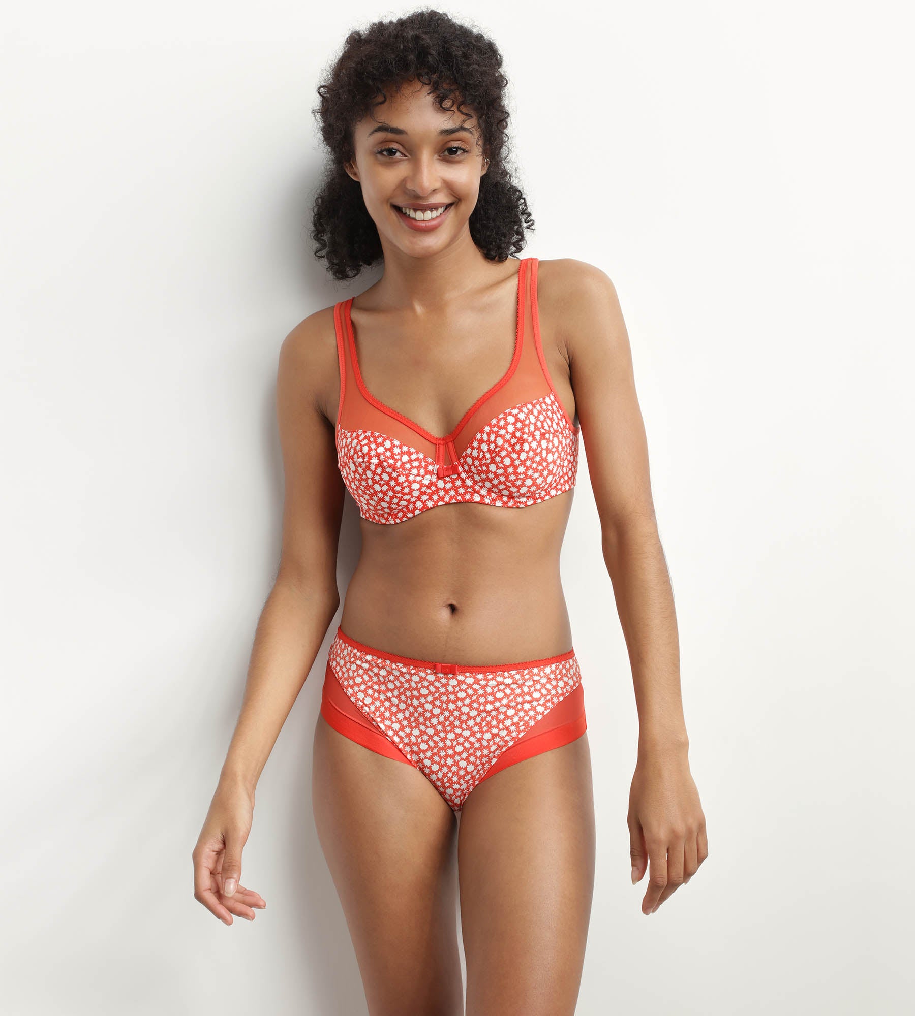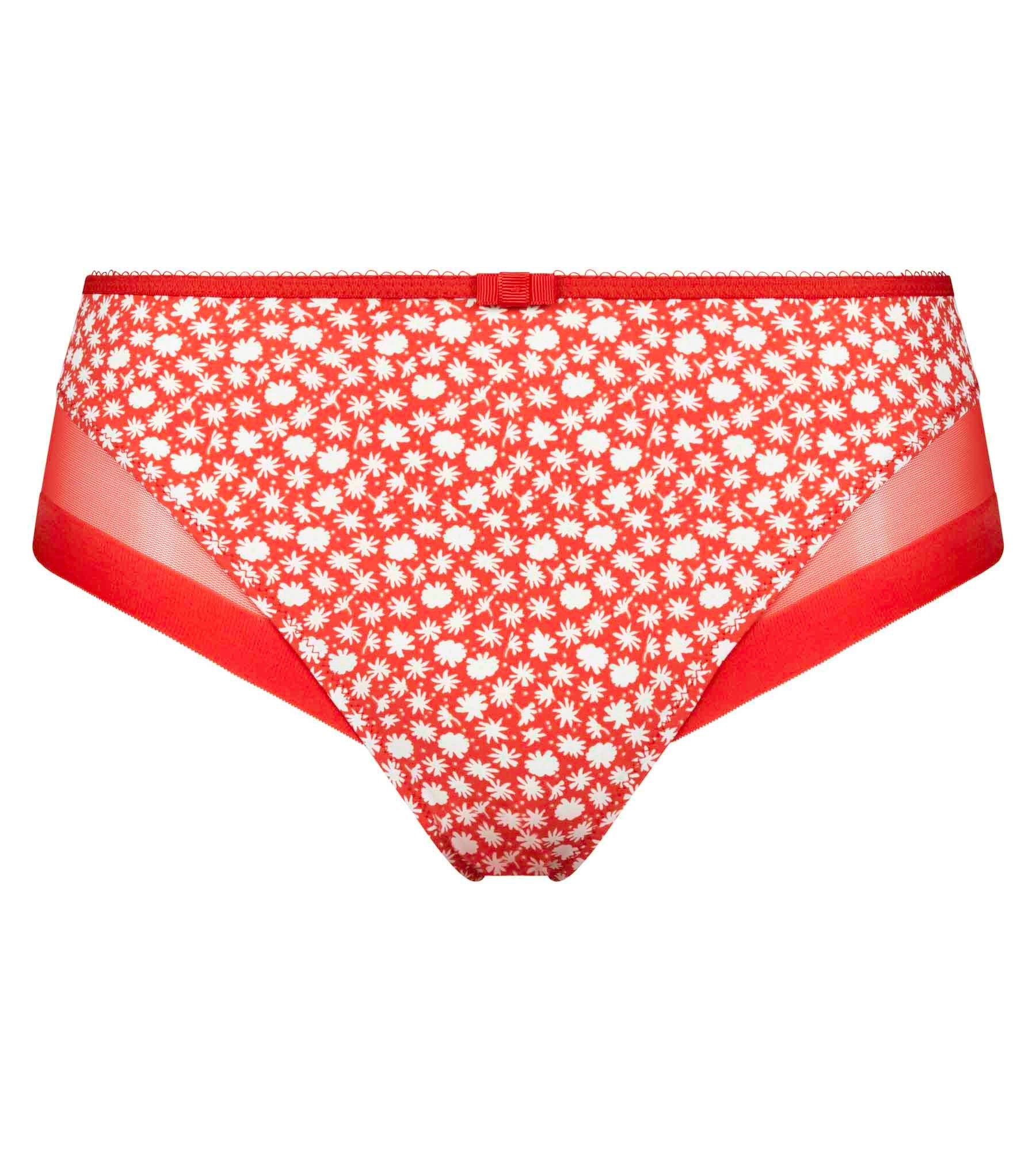 Dites oui au confort infini et au style coquet de notre slip femme Generous en microfibre et tulle Rouge à motifs bucoliques, trop charmants !