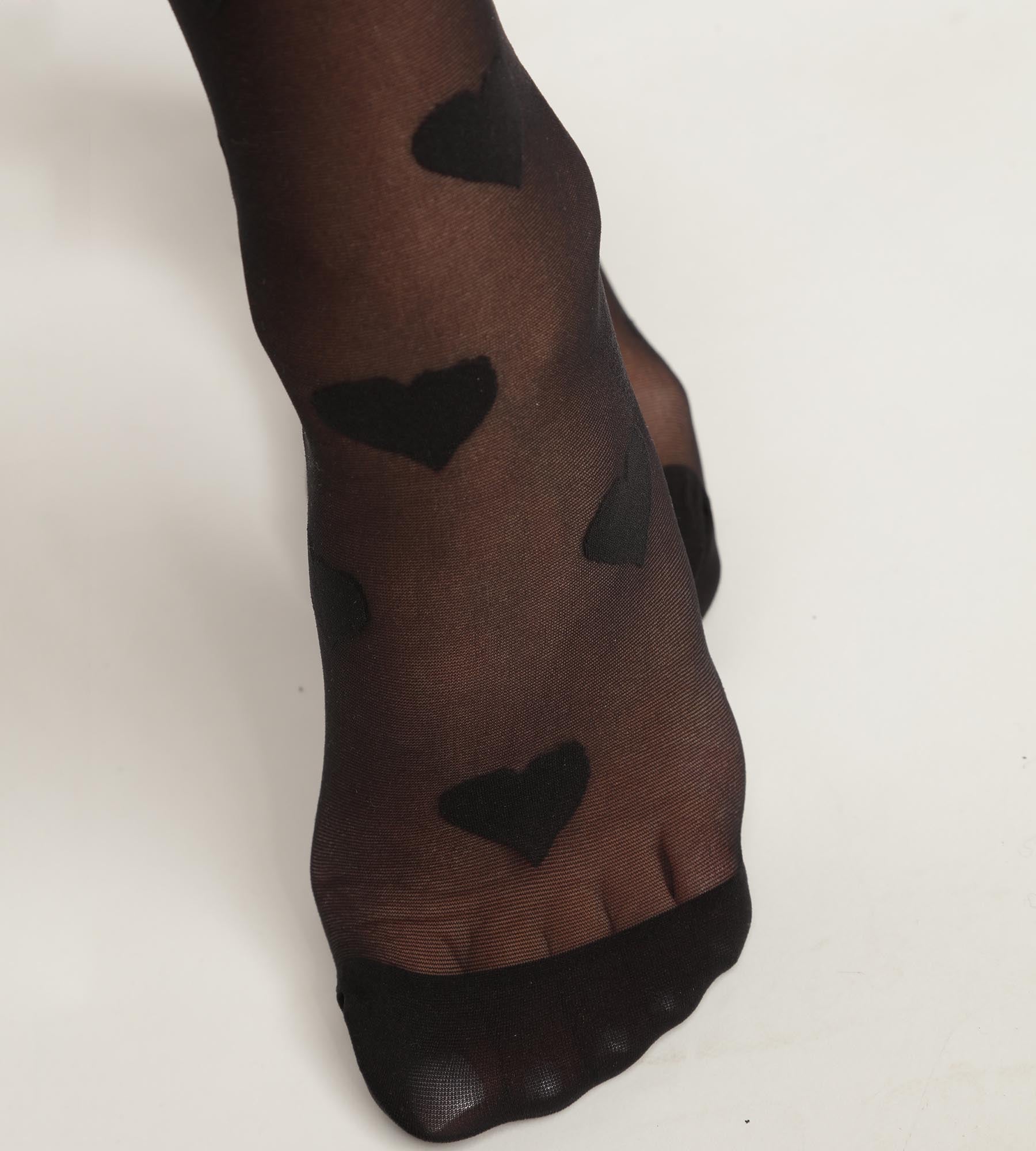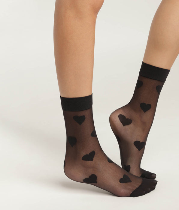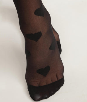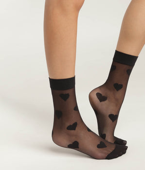 Affichez votre côté romantique avec les socquettes en voile transparent Noir aux motifs coeurs Dim Style !
