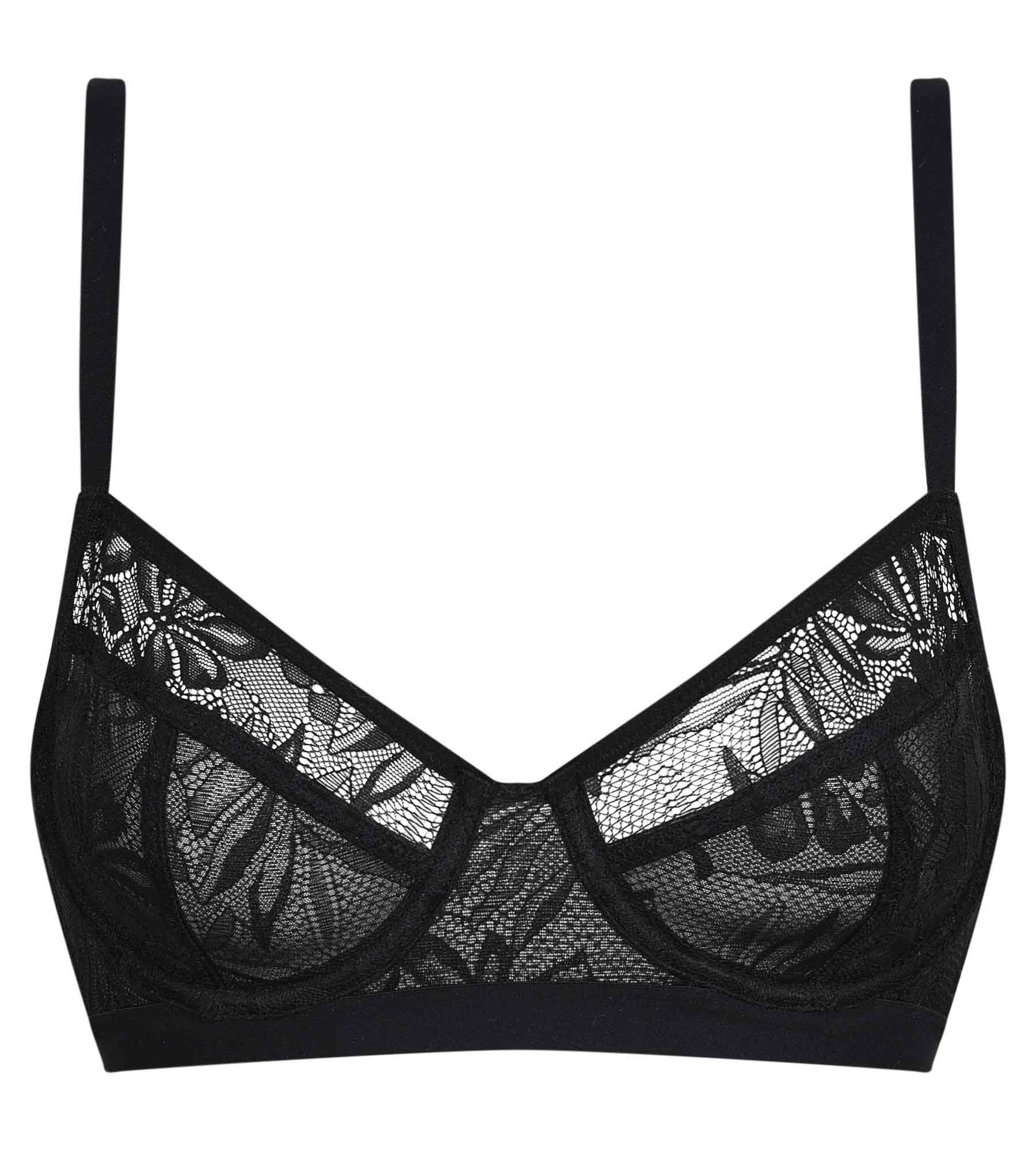 Succombez pour l’élégance et l’exotisme du soutien-gorge emboitant Mod de Dim en dentelle noire aux motifs tropicaux tendances !
