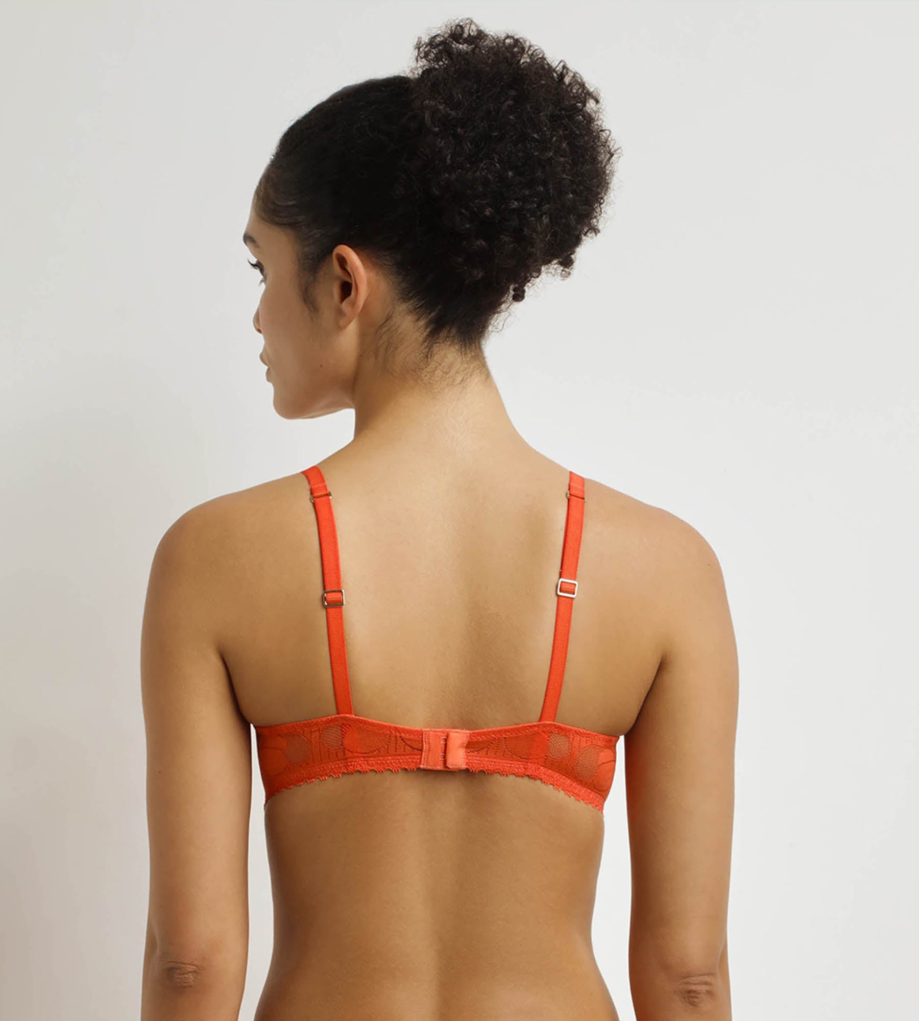 Affichez un look vibrant avec le soutien-gorge corbeille Orange Dim Art Flower. Grâce à ses bonnets moulés avec mousse intégrée, il rapproche et arrondit naturellement la poitrine tout en offrant un vrai confort. Sa dentelle fleurie joue avec la transparence pour sublimer le décolleté sans alourdir la silhouette. Ce soutien-gorge à armatures aux détails dorés combine maintien et féminité dans un esprit graphique et moderne.