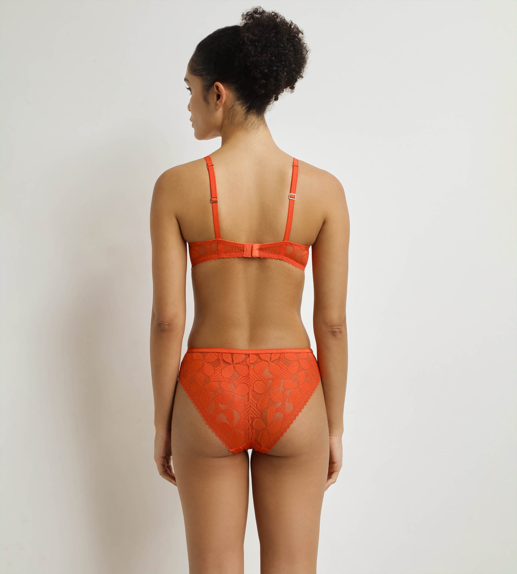 Magnifiez votre poitrine avec le soutien-gorge corbeille Orange Dim Art Flower en dentelle florale rétro.
