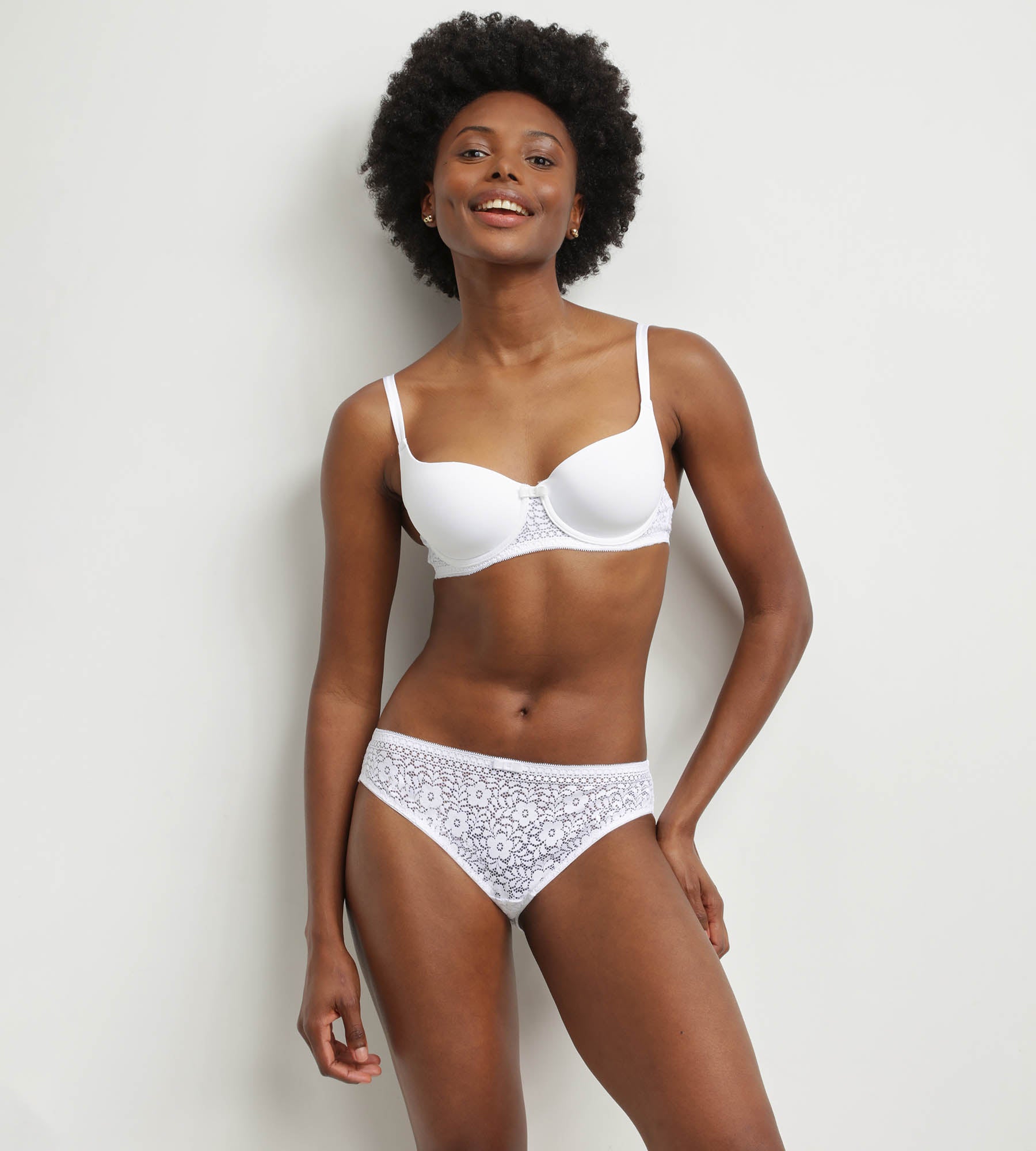 é avec féminité grâce au soutien-gorge corbeille Blanc Dim Sublim en dentelle florale recyclée.