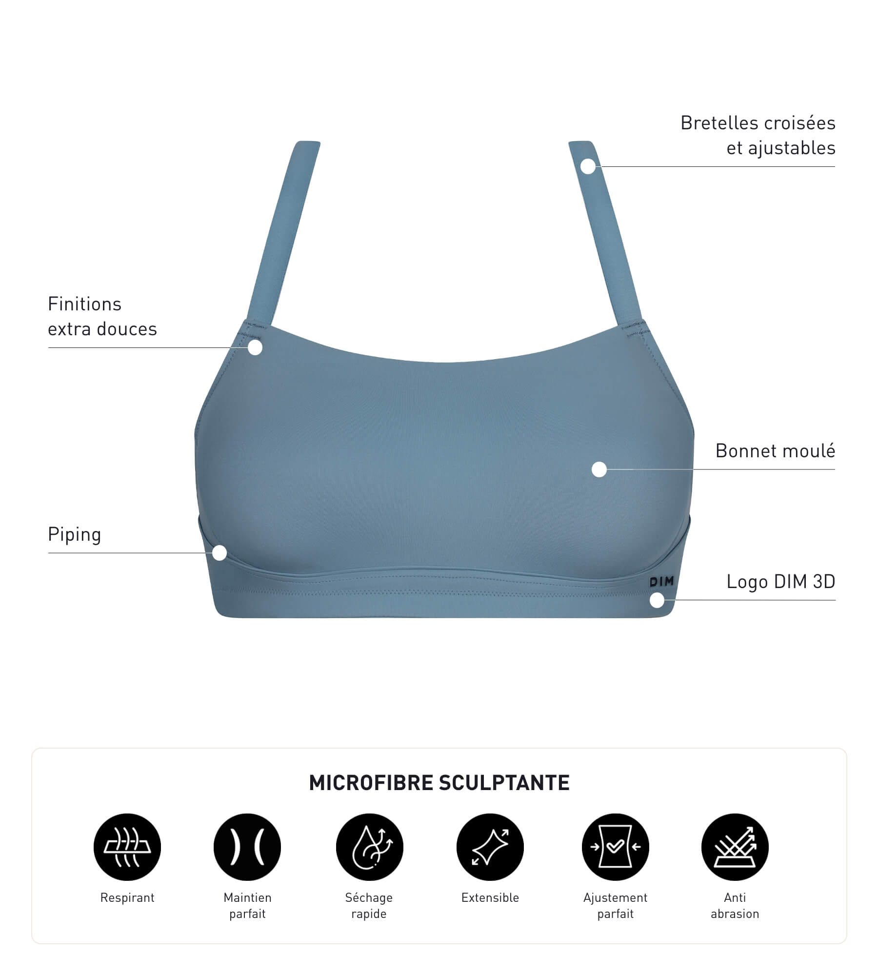 Soutenez votre poitrine avec efficacité et style grâce au soutien-gorge sans armature en microfibre Bleu Jean Dim Move !