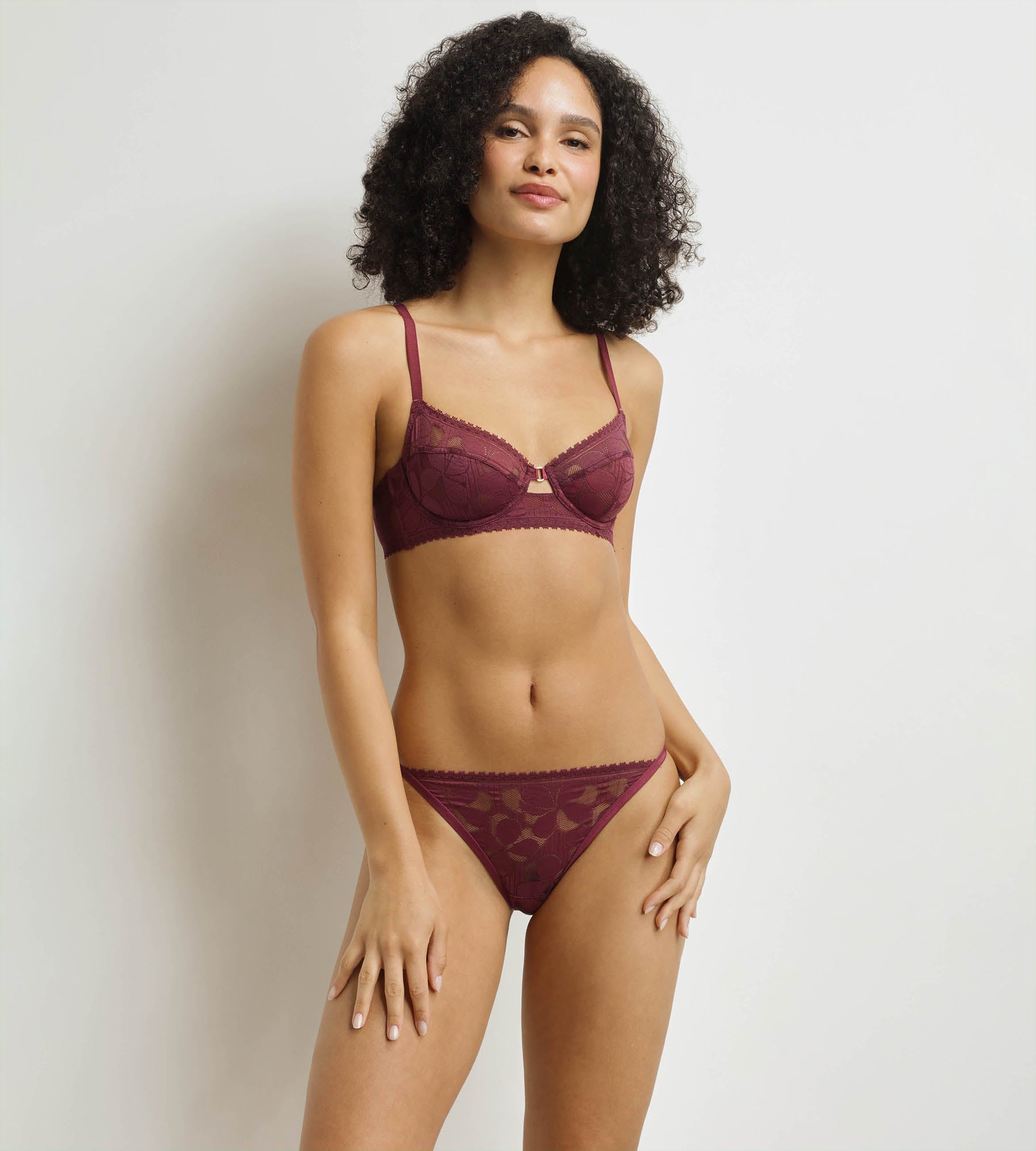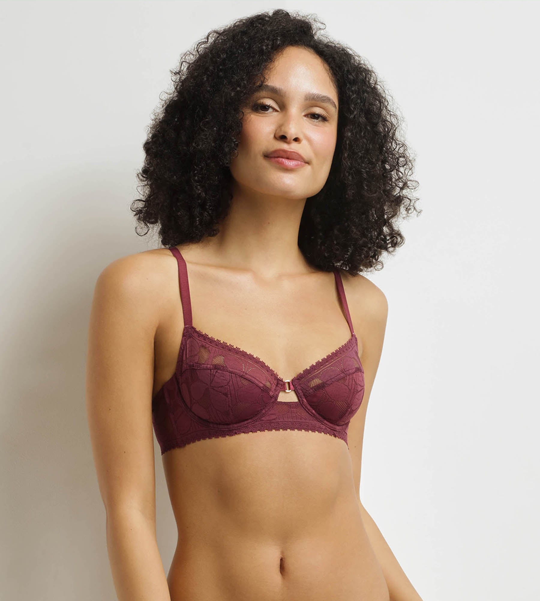 Conçu pour allier confort et style, le soutien-gorge femme Dim Art Flower en dentelle joue sur la transparence pour un effet à la fois graphique et délicat. Sa forme emboîtante soutient parfaitement la poitrine grâce à ses bonnets semi-doublés et ses armatures discrètes. Le large dos en U et la basque élastique sous la dentelle assurent un maintien stable sans compromis sur la douceur. Avec son coloris Figue et son bijou à l’entre-bonnet, ce soutien-gorge à armatures revisite l’esprit vintage des années 70 avec modernité.