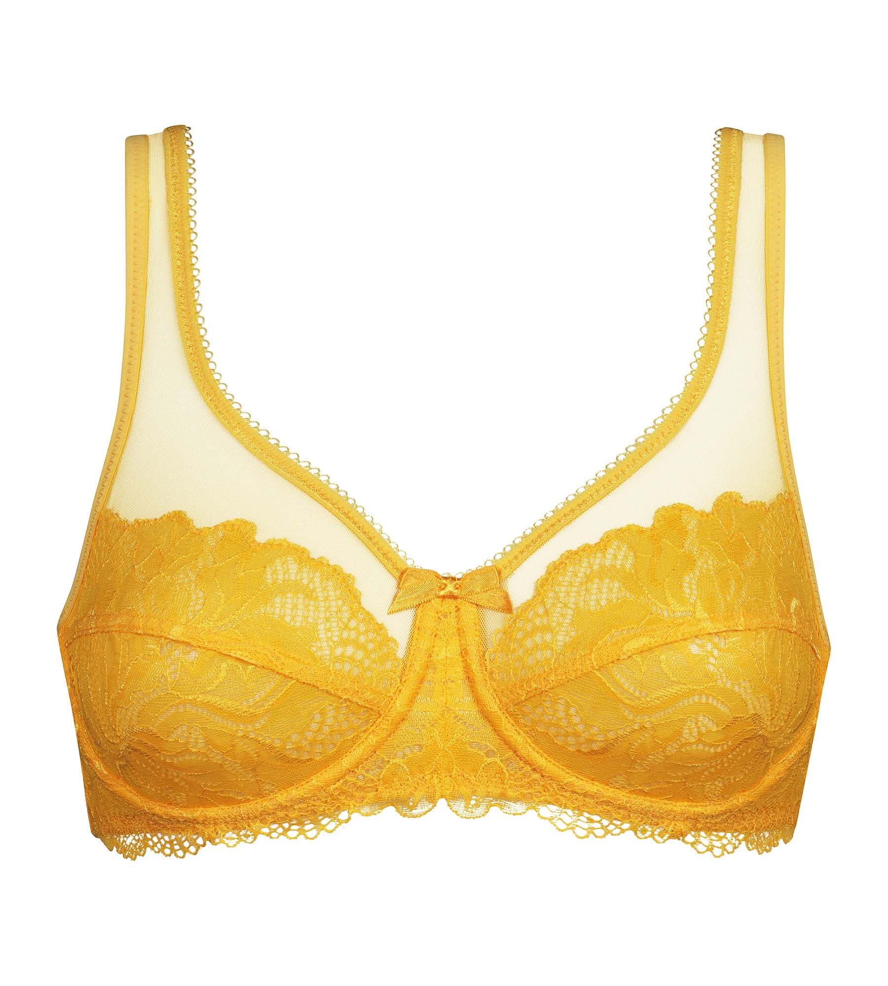 Succombez au style vibrant et féminin du soutien-gorge emboîtant Generous Essentiel de DIM en dentelle Jaune Mirabelle !