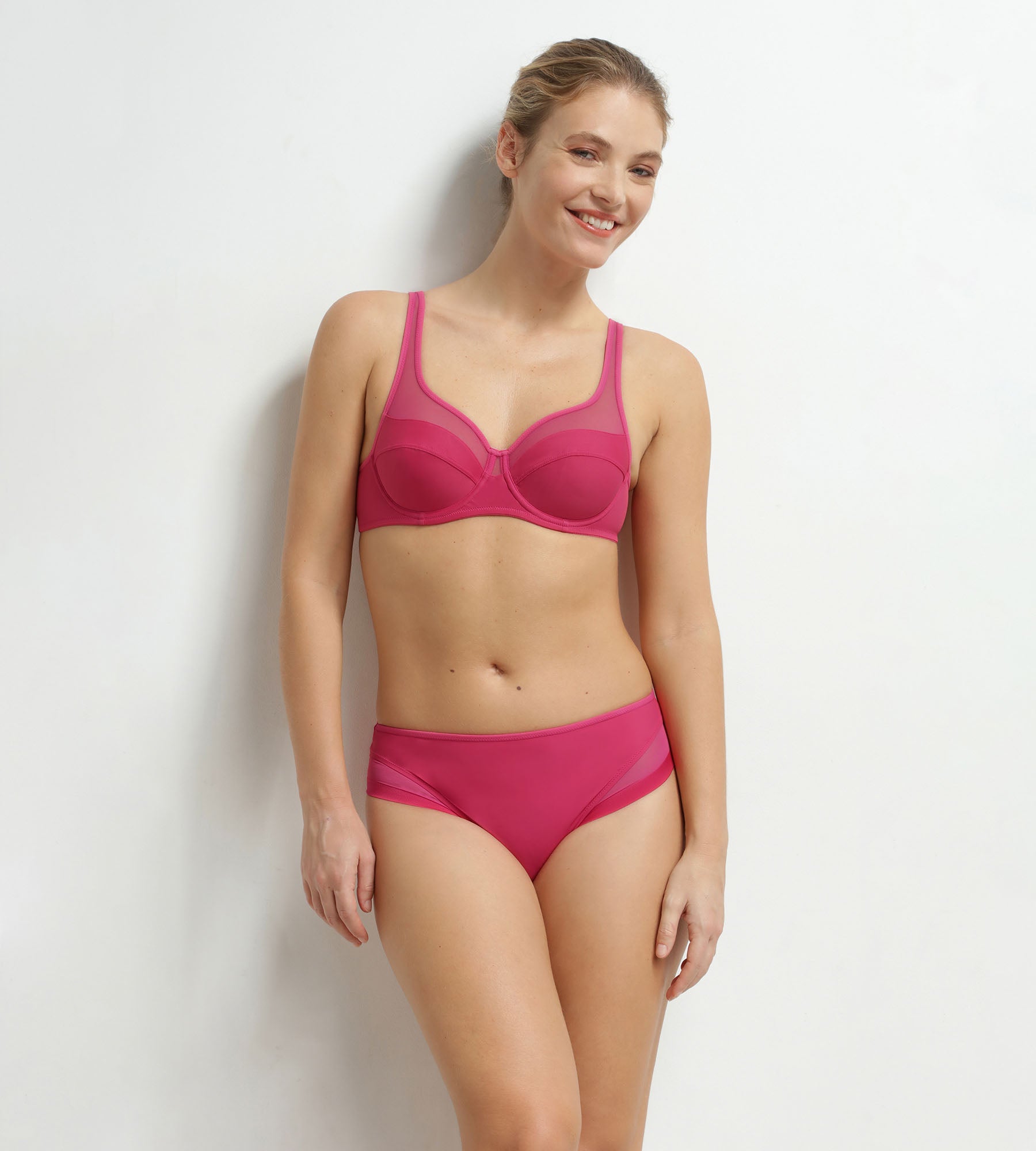 Pour un ensemble coordonné, associez le soutien-gorge bon maintien Dim Generous Framboise à la culotte Generous assortie.