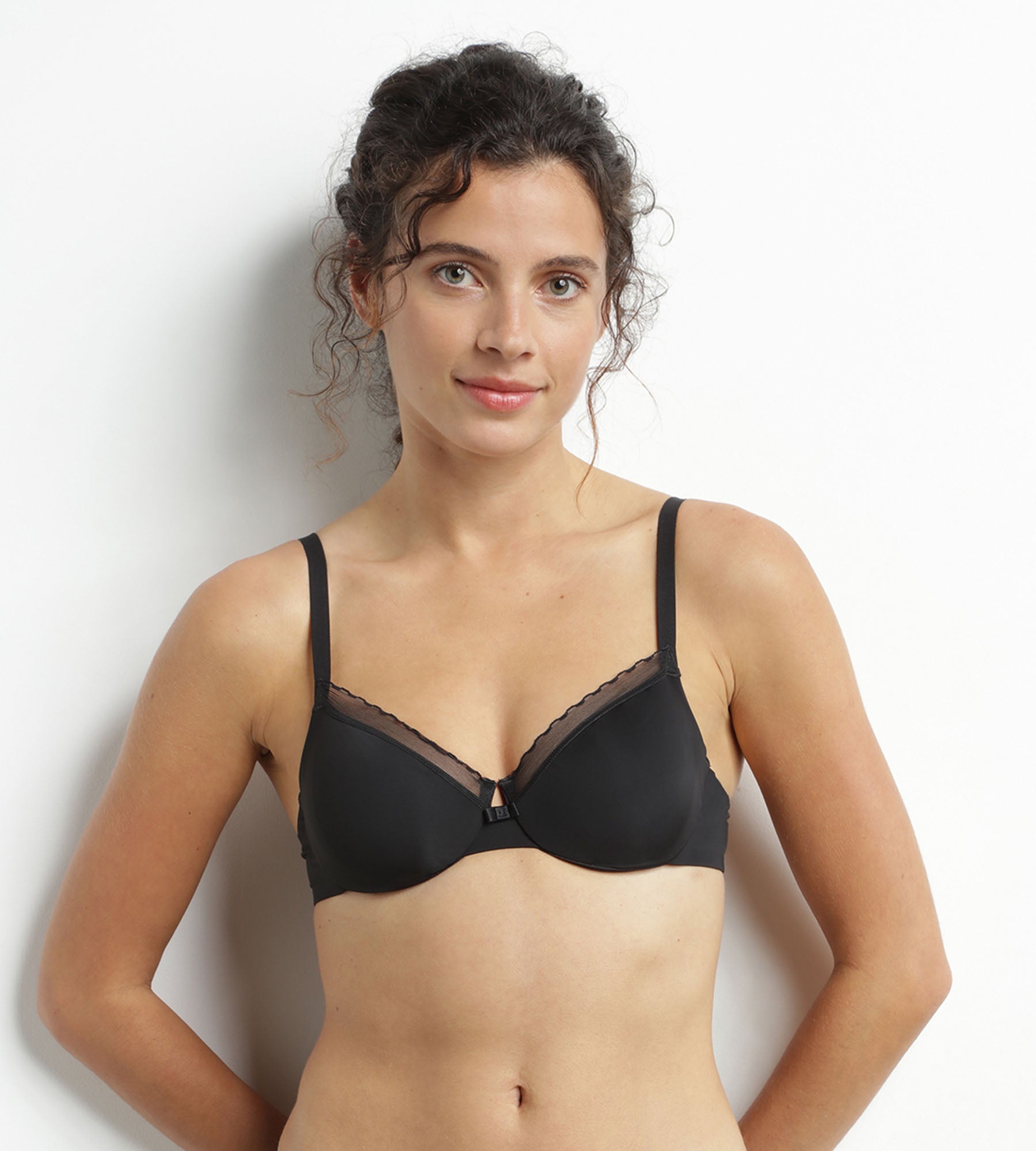 Pour un maintien discret et un style élégant, misez sur le soutien-gorge emboîtant Dim Daily Confort en microfibre et tulle Noir.