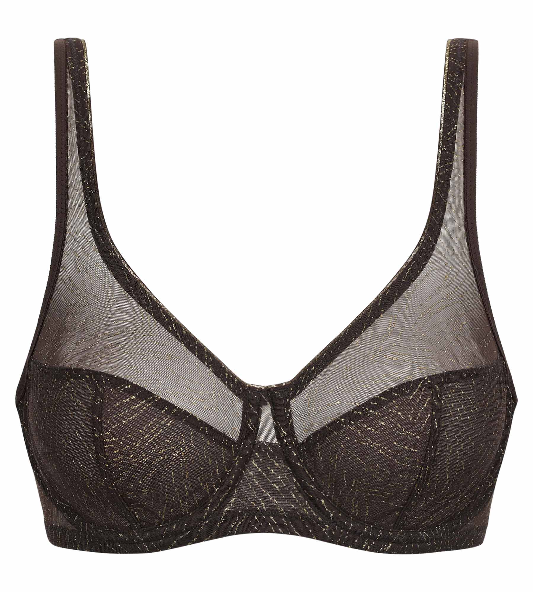 Soutien-gorge emboitant en tulle Chocolat et zébrures or Dim Generous