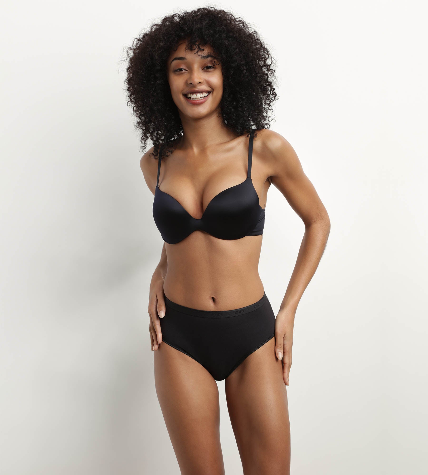Associez le soutien-gorge à armatures push-up Dim Comfort Collection avec notre culotte noire ou string femme coordonnés !