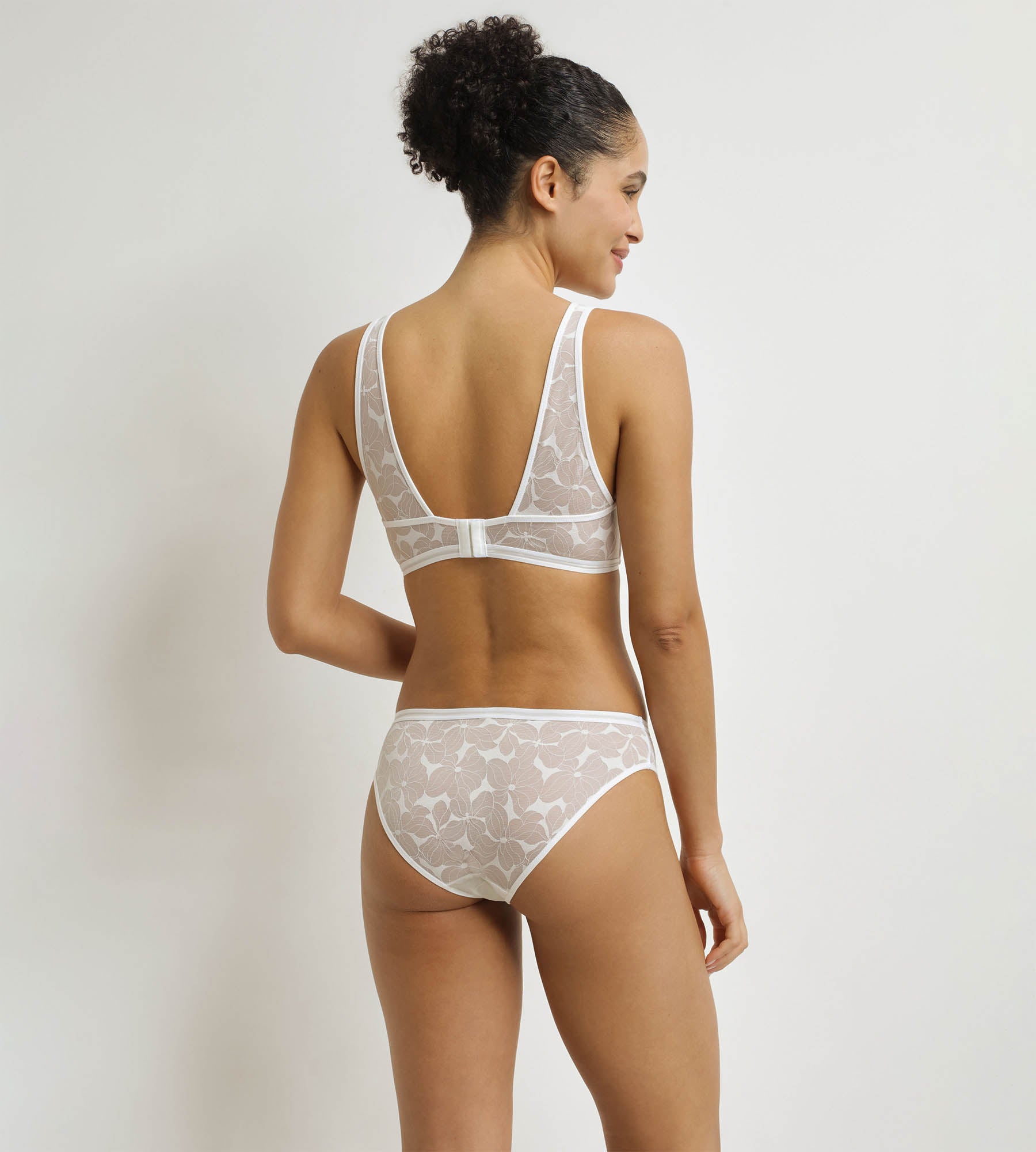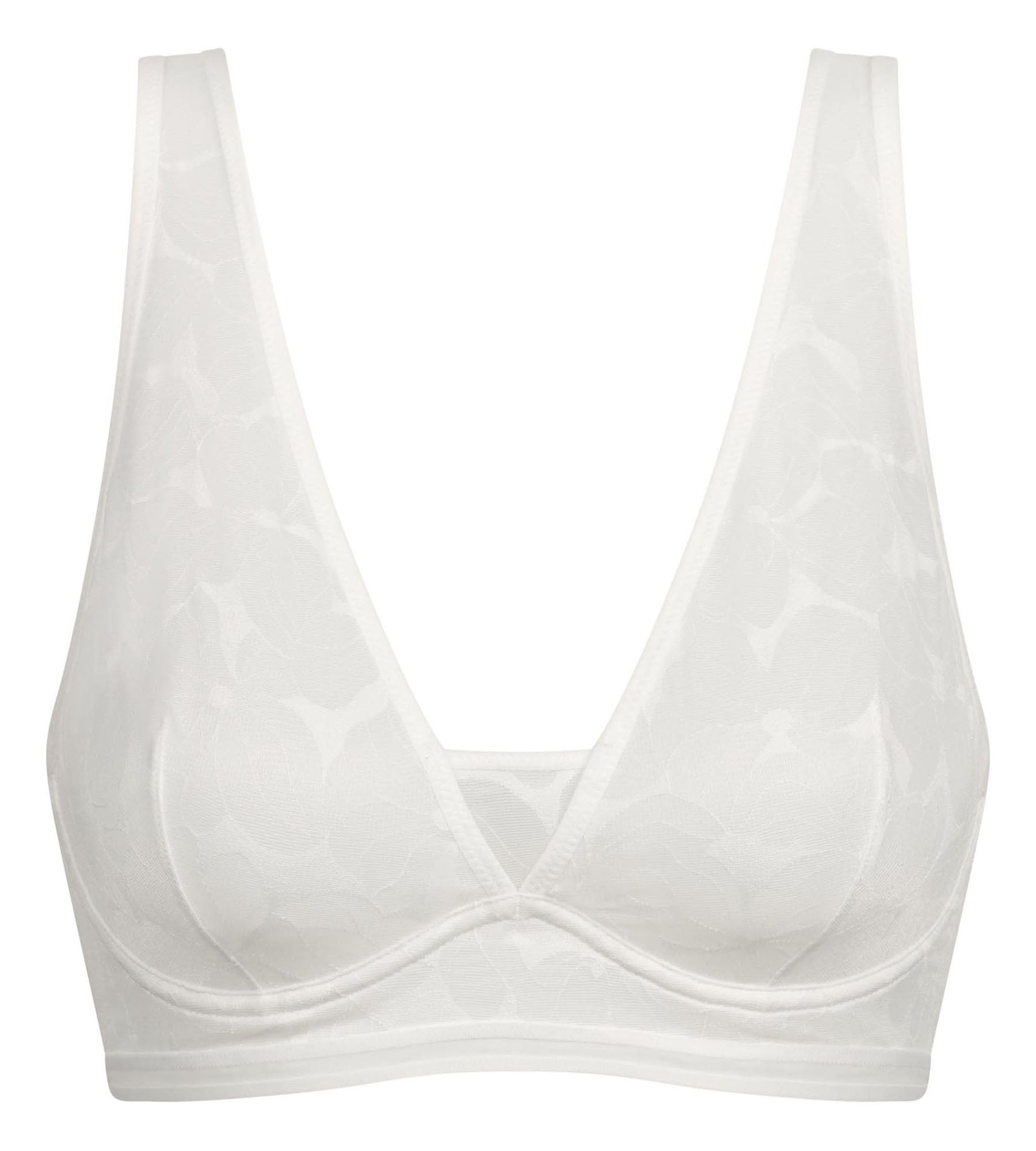 Alliez confort et élégance avec le soutien-gorge foulard à armatures Dim Bloom en dentelle florale blanche.