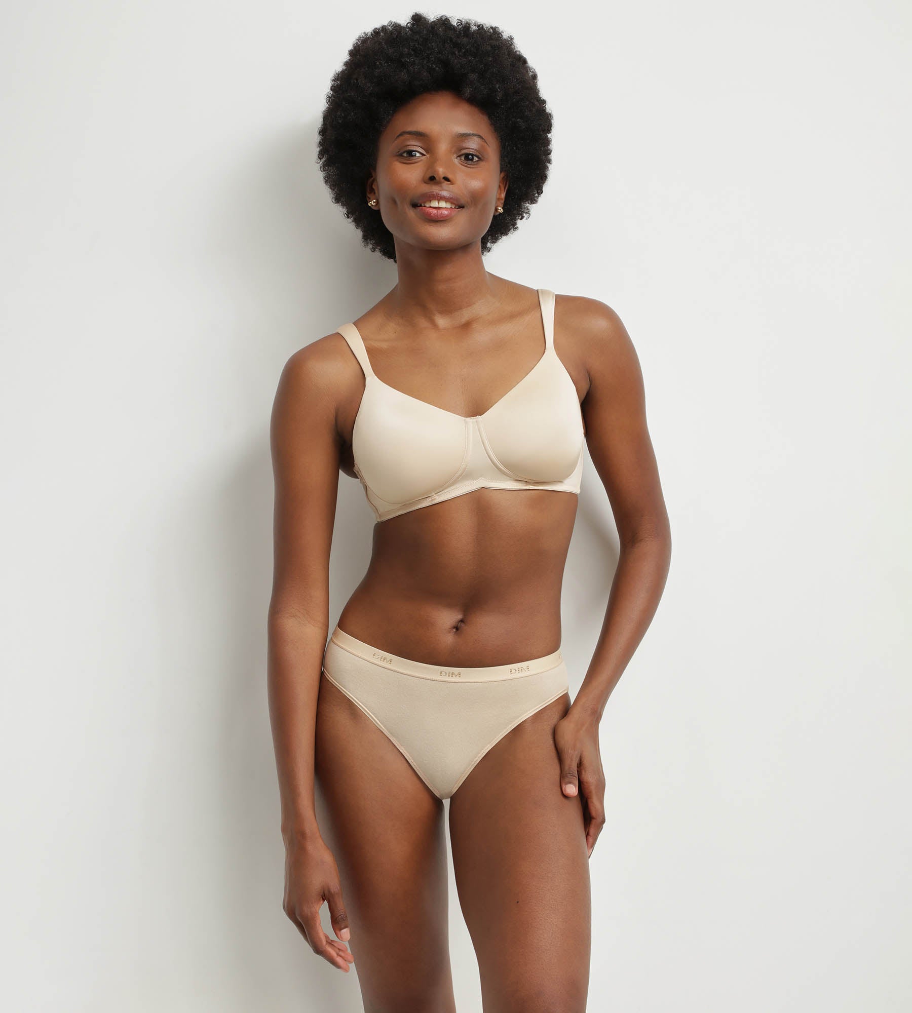 Discret et très confortable, le soutien-gorge post-opératoire Dim en microfibre Nude magnifie et protège efficacement la poitrine.