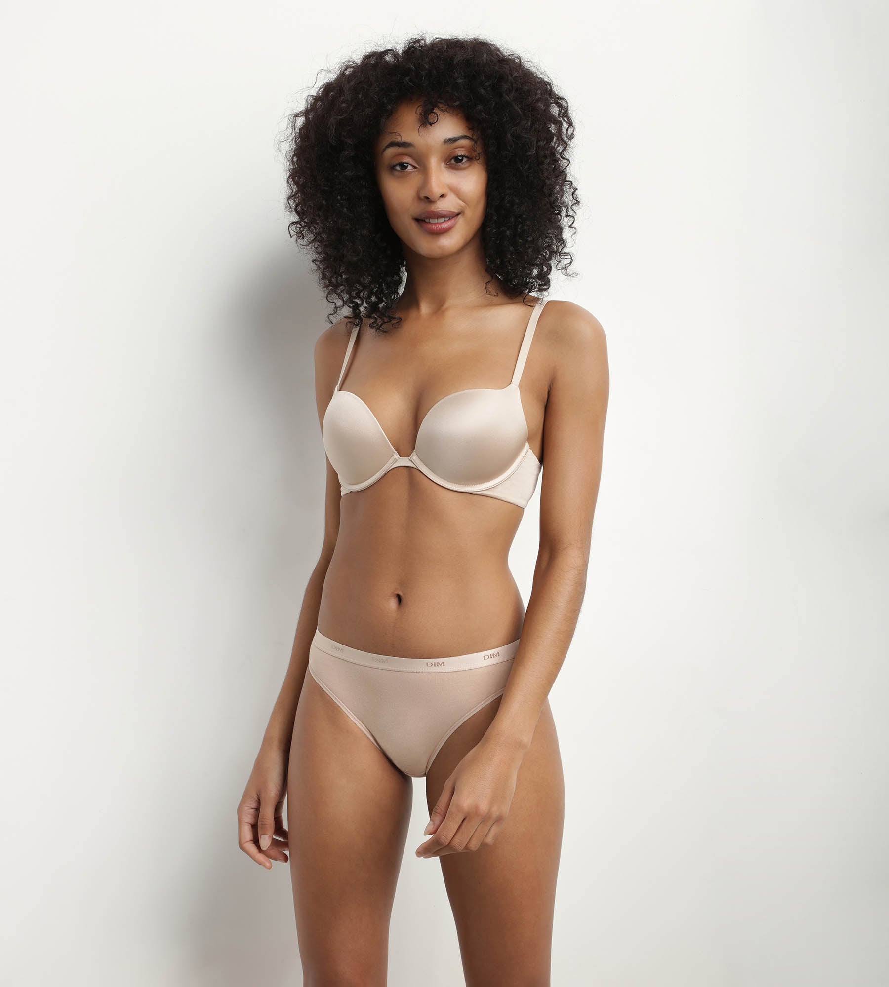 Soulignez votre décolleté avec audace grâce au soutien-gorge push-up en microfibre nude Dim Beyond Sexy !