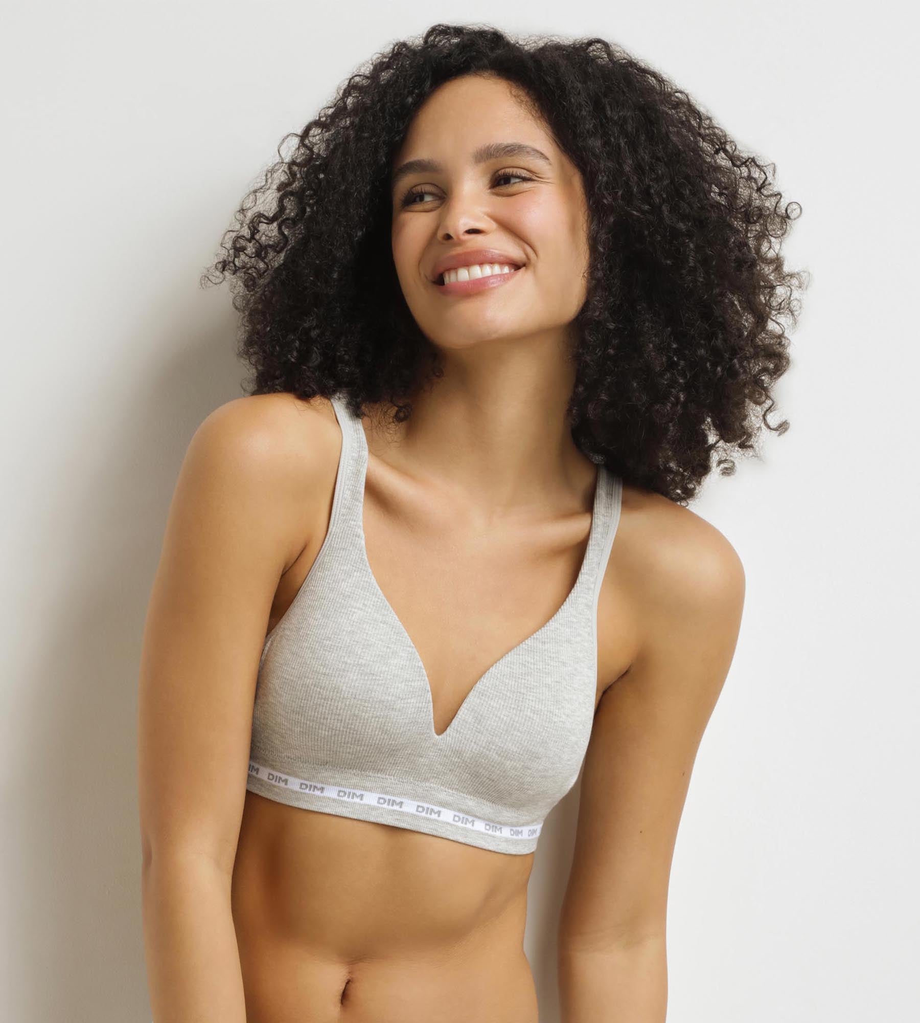 Confortable et stylé, ce soutien-gorge paddé de la ligne Dim Icons coche toutes les cases. Sa coupe triangle sans armature épouse les formes tout en douceur, tandis que les bonnets moulés offrent un galbe discret. Le tissu côtelé Gris Chiné, léger et extensible, en fait un soutien-gorge parfait pour les journées actives ou les moments cocooning.