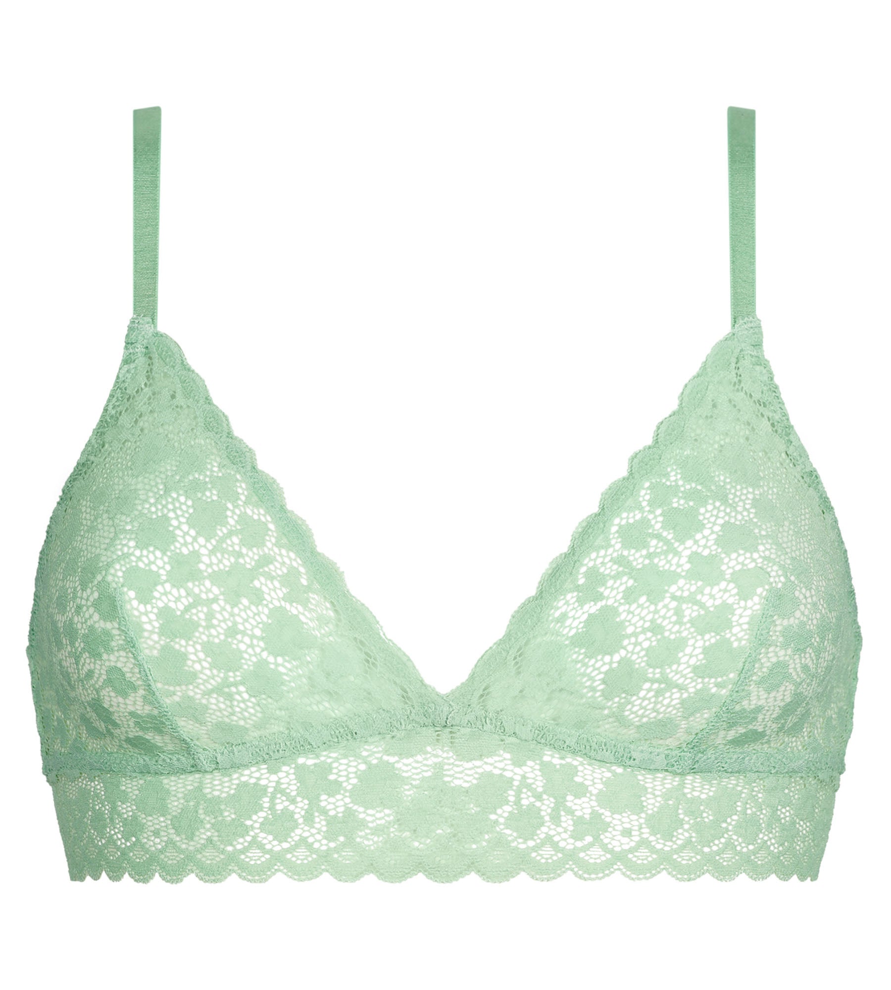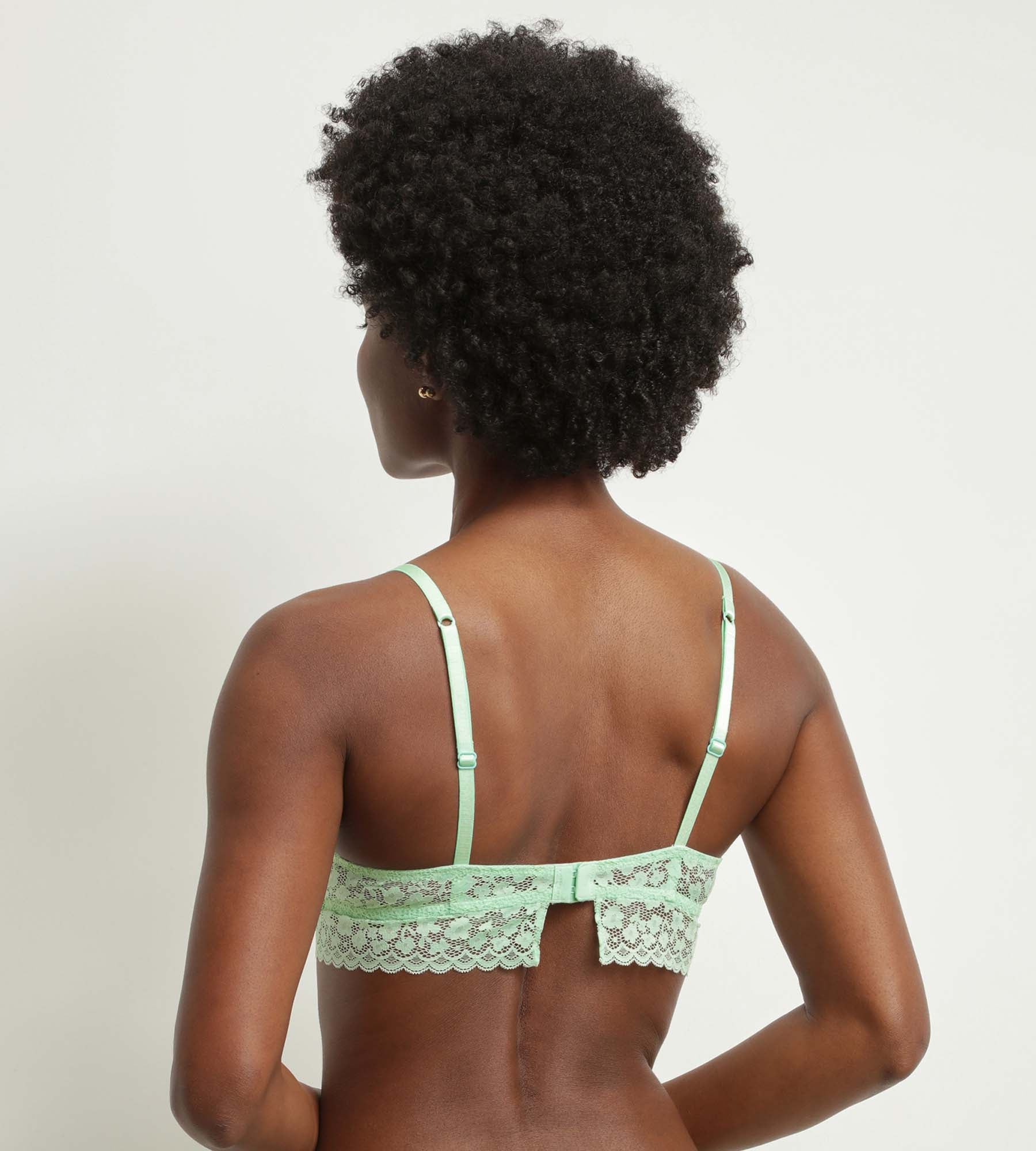 Succombez pour le style décontracté et féminin du soutien-gorge triangle sans armature Daisy Lace, en dentelle florale Vert d’Eau !