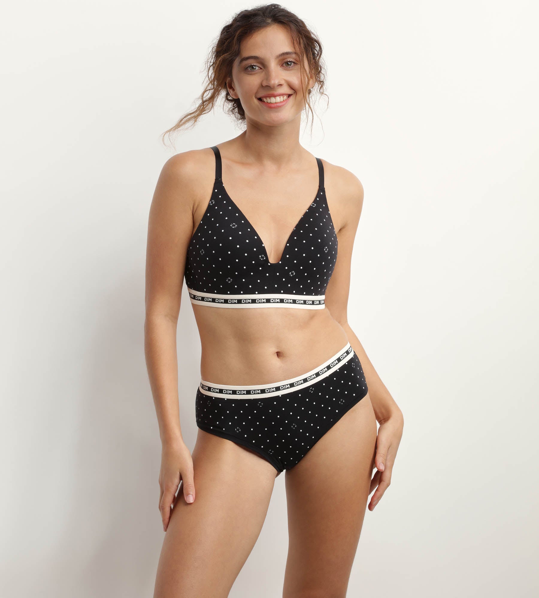 Soutien-gorge triangle paddé en coton modal Noir à pois Dim Icons