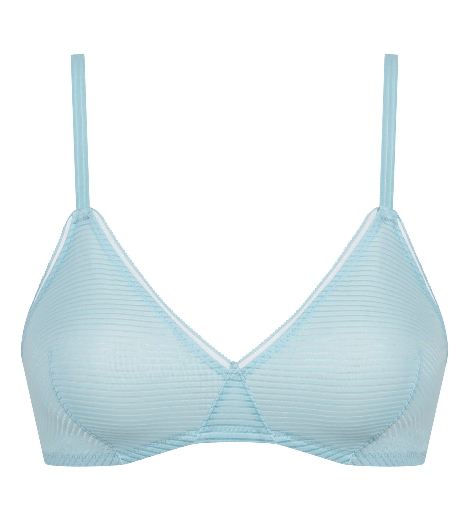 Décolleté naturel et lignes épurées avec le soutien-gorge triangle sans armature Bleu Chemise Dim x Inès de La Fressange.
