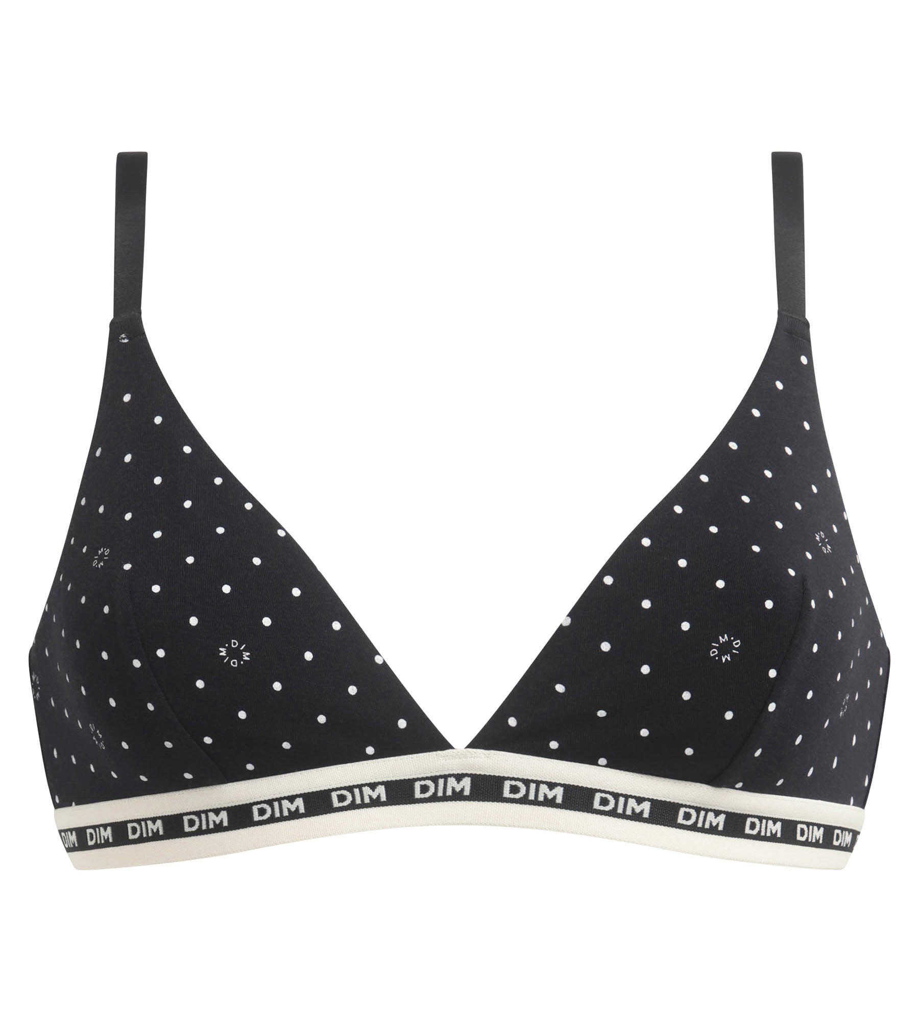 Dim revisite l’iconique motif pois avec ce soutien-gorge triangle sans armature Dim Icons Essentiel en coton modal Noire !
