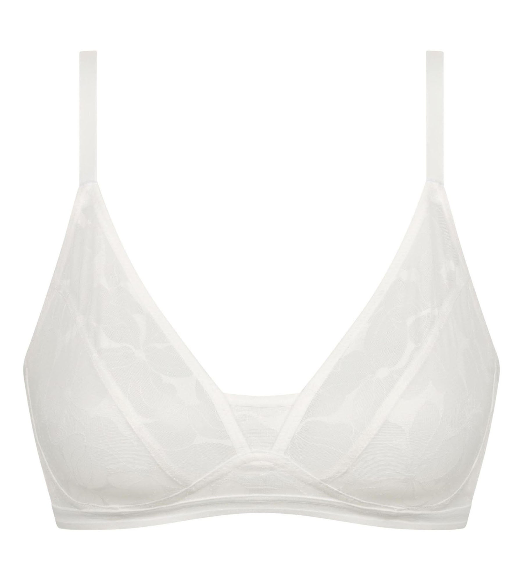 Allure légère et maintien discret avec le soutien-gorge triangle sans armature Blanc Dim Bloom en dentelle florale.