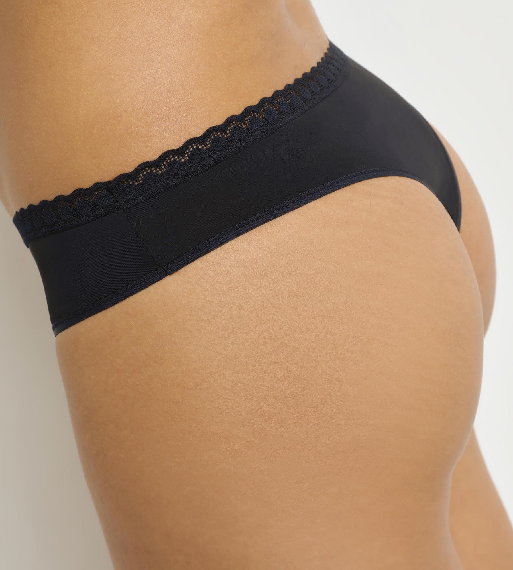 Ce string Noir pour femmes Daily Micro est pensé pour se glisser sous tous vos vêtements avec discrétion. Vous allez adorer la microfibre soyeuse qui suit vos gestes avec facilité, et la ceinture en dentelle fine qui ajoute une subtile touche de style. Invisible sous un pantalon ou une robe ajustée, ce string femme Daily Micro est le basique pratique, confortable et joli à avoir dans son tiroir à lingerie.