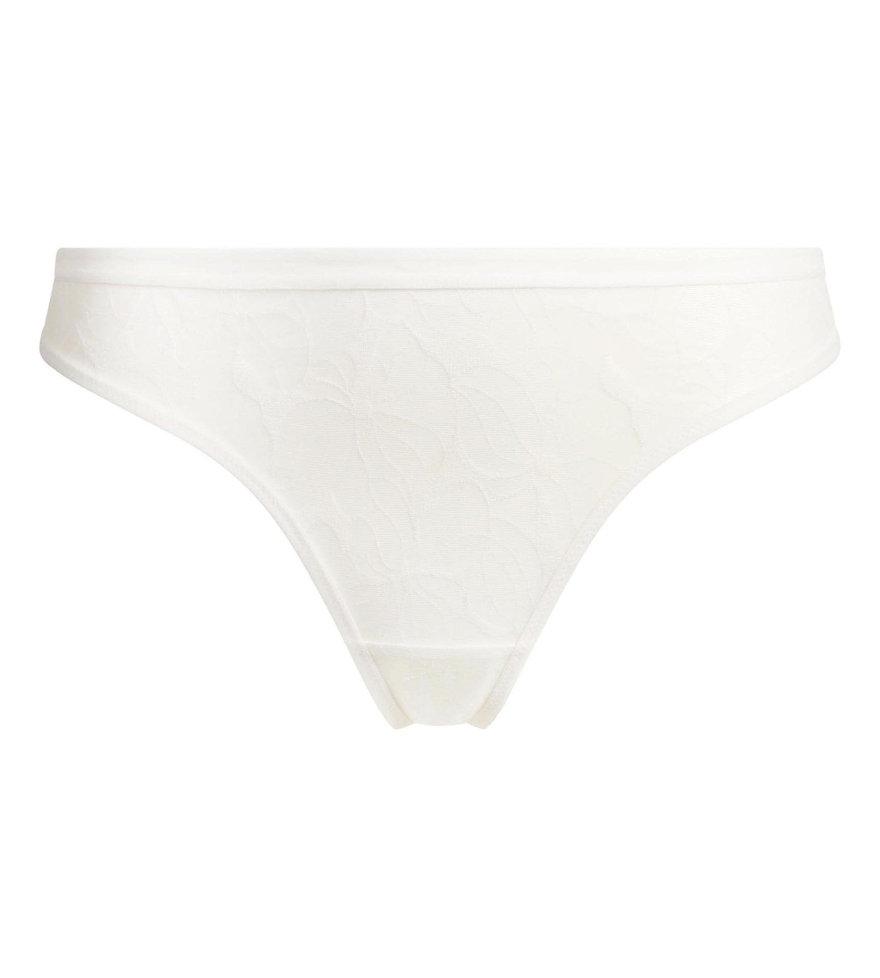 Adoptez une allure épurée et féminine avec le string femme Dim Bloom en dentelle florale blanche.