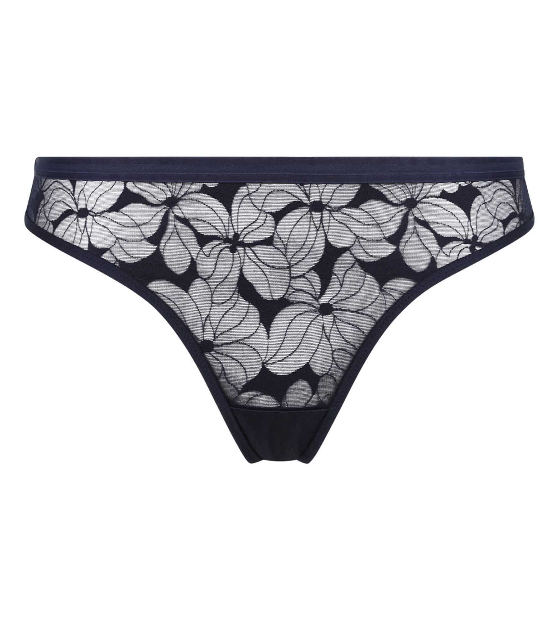 Craquez pour la dentelle aérienne et la ligne discrète du string femme Dim Bloom en dentelle florale Bleue.