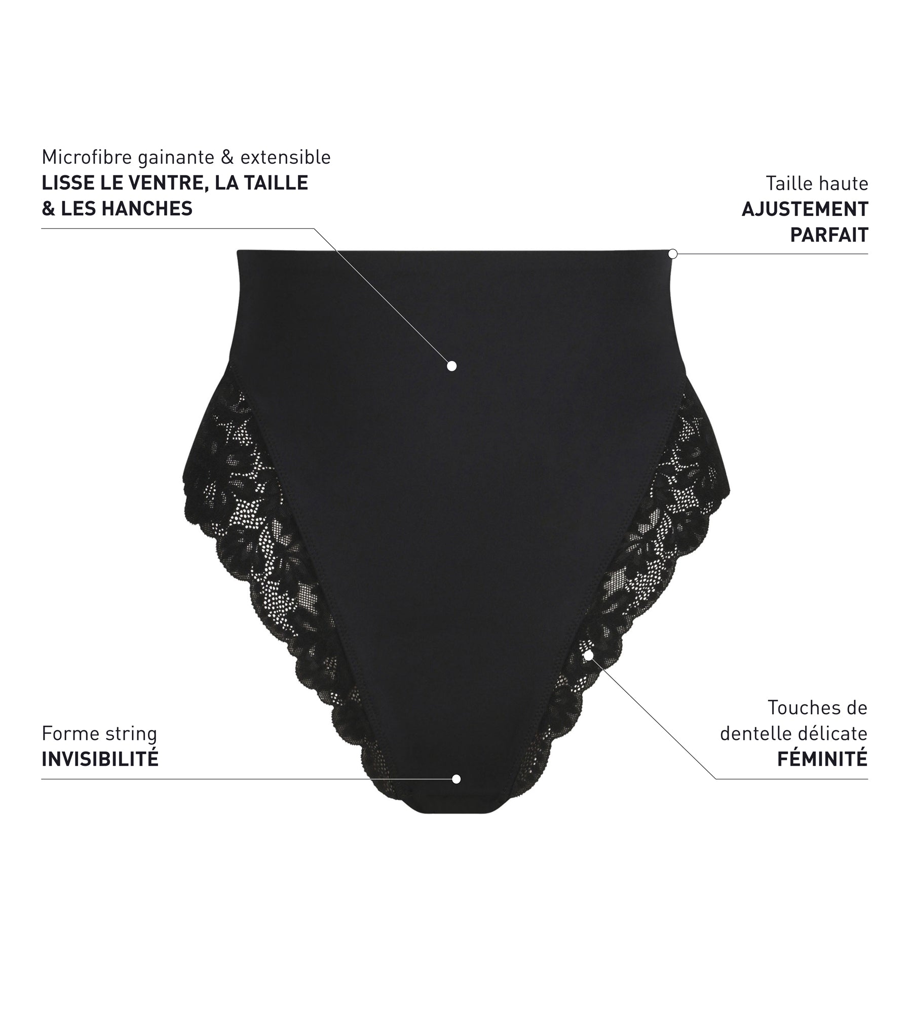 String galbant taille haute microfibre et dentelle Noir Dim Silhouette Elegance