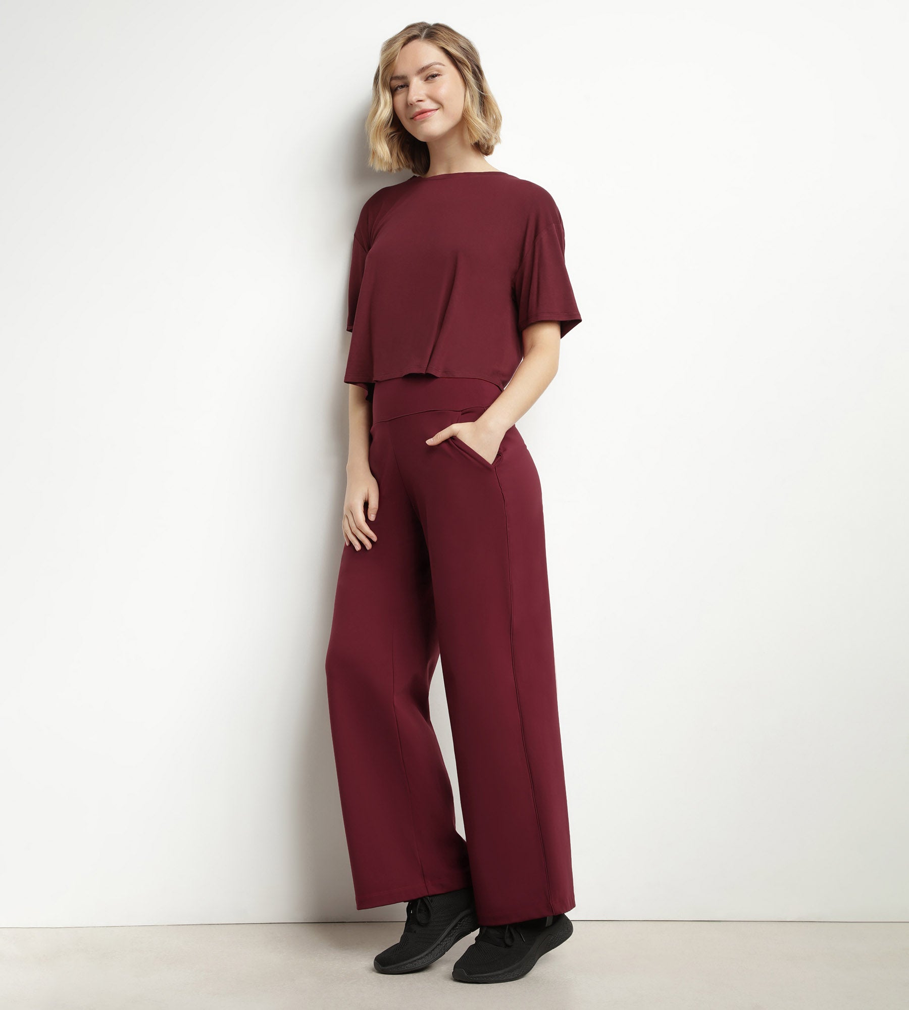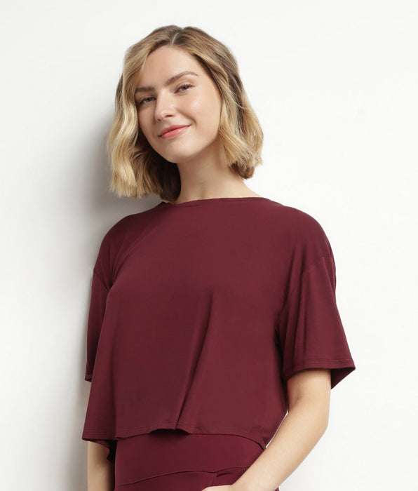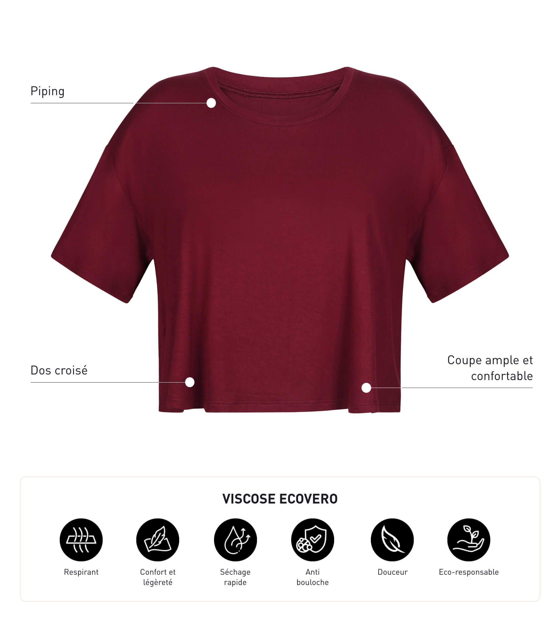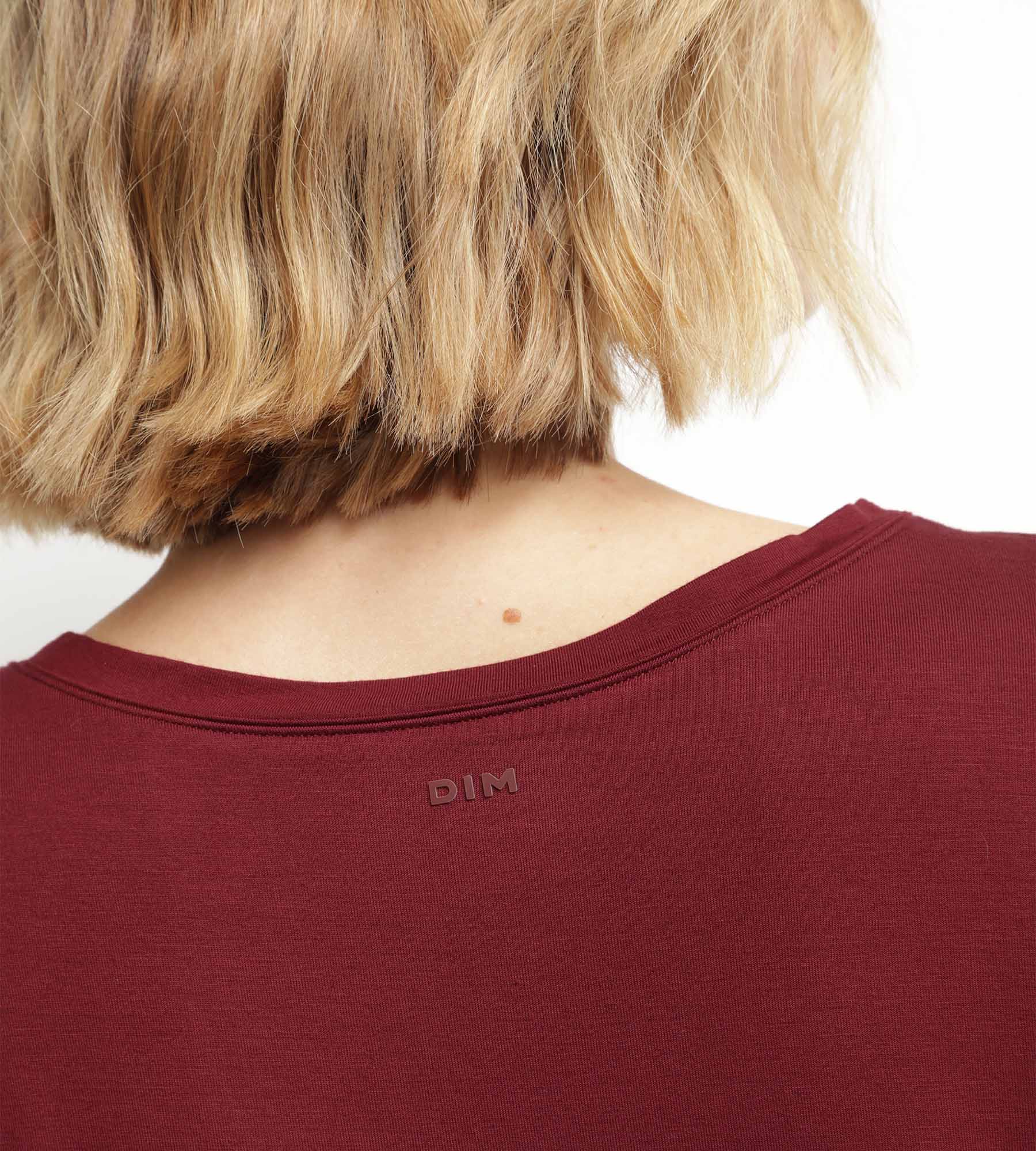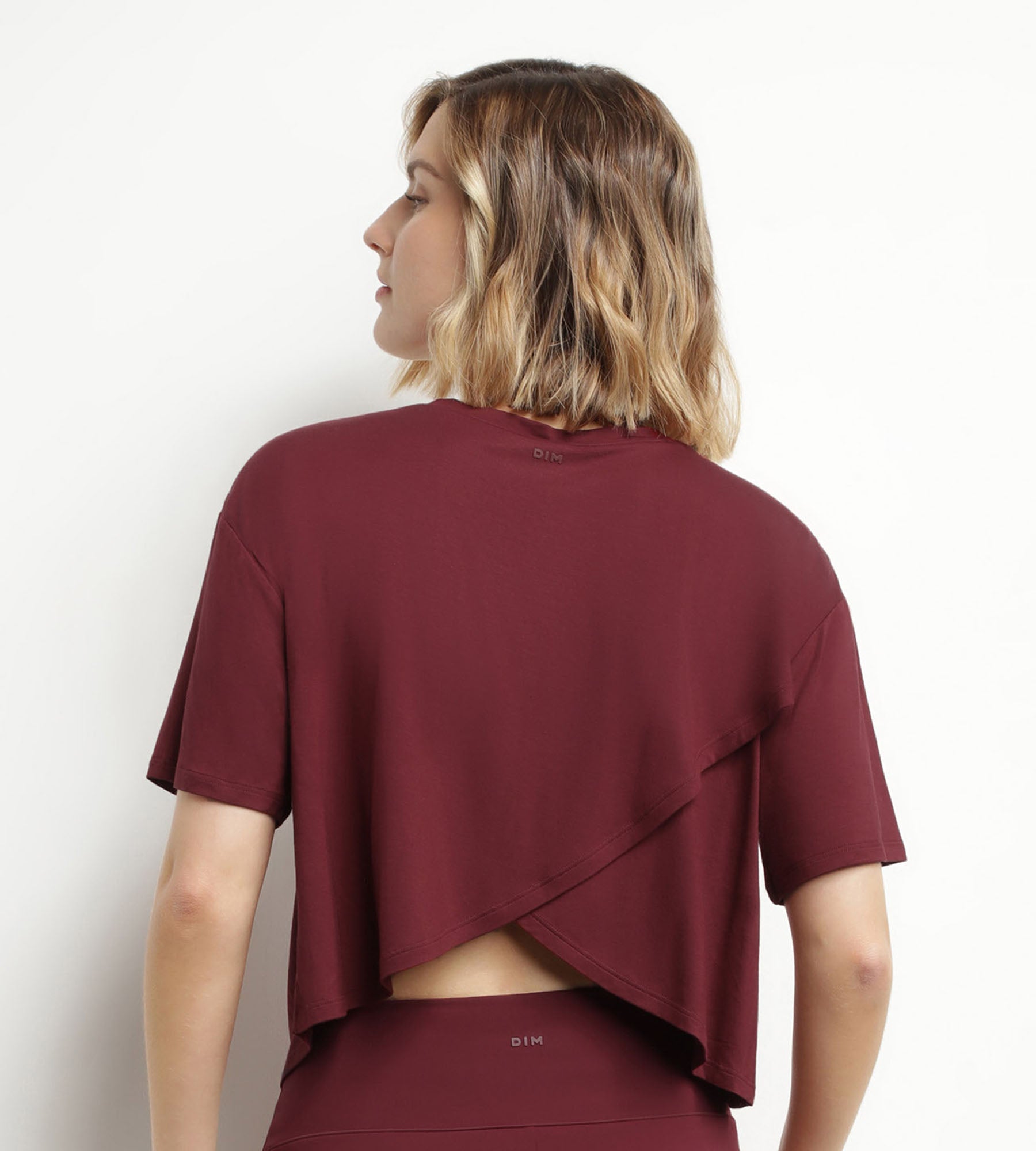 Succombez pour le look casual du t-shirt de sport femme au dos ouvert en viscose Bordeaux Dim Move !
