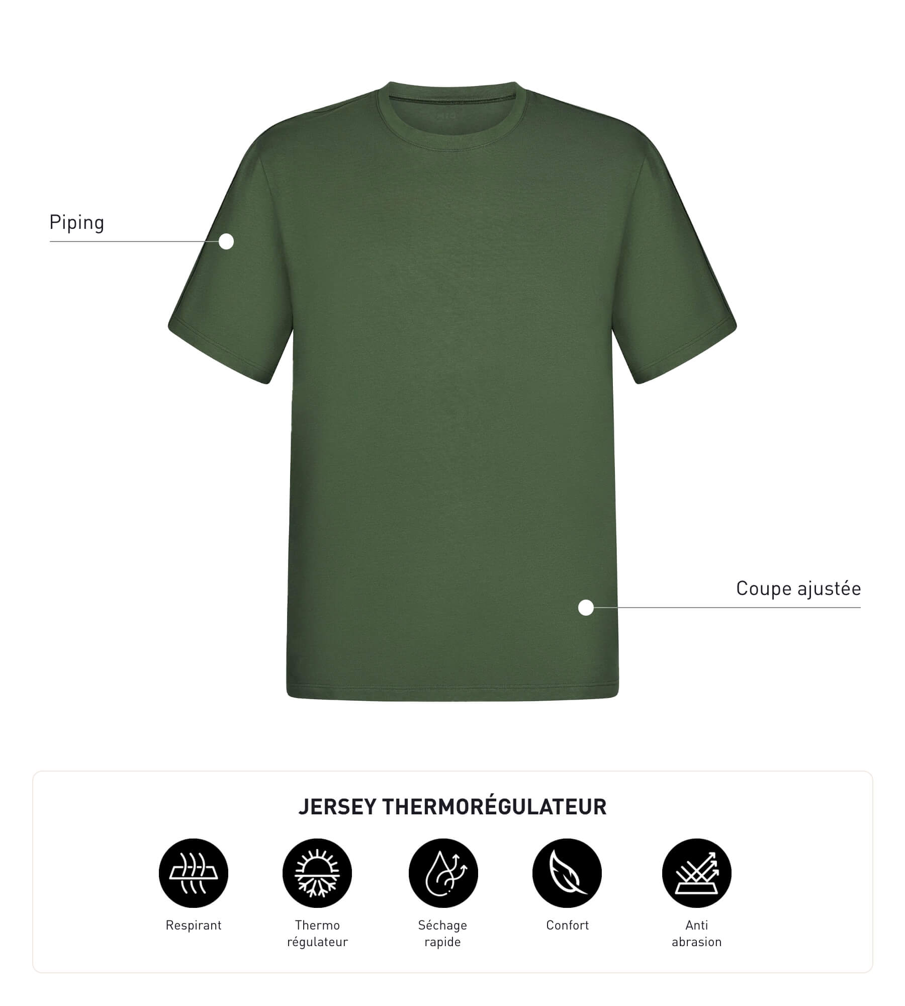Améliorez votre bien-être pendant l’effort avec le t-shirt homme Dim Move en jersey Kaki au style très urbain !