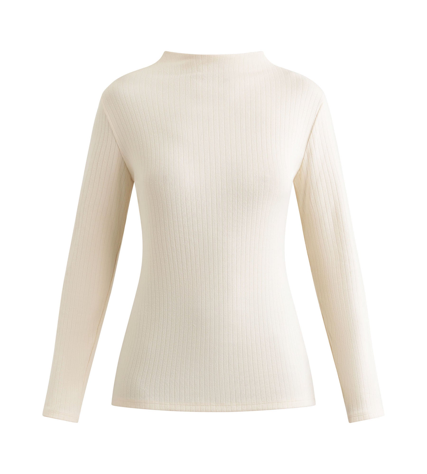 T-shirt femme côtelé à col montant Beige Dim Thermal