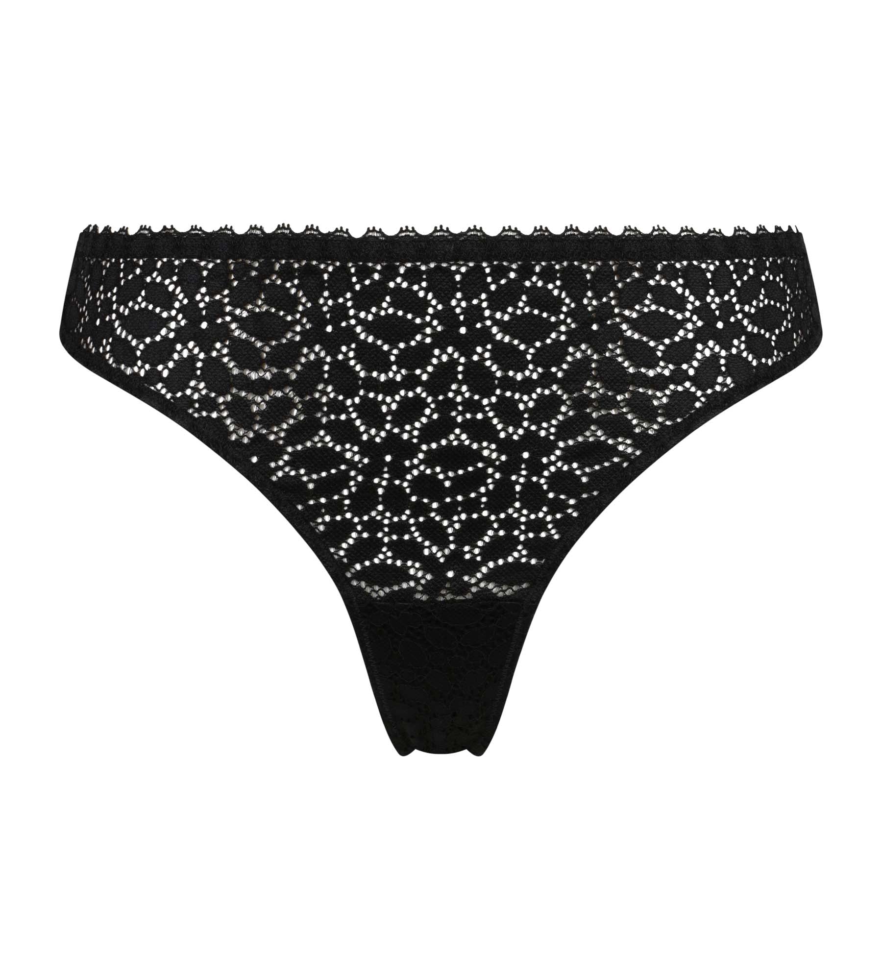 Alliez confort et sensualité avec le tanga femme Noir Daily Dentelle au motif floral ajouré.